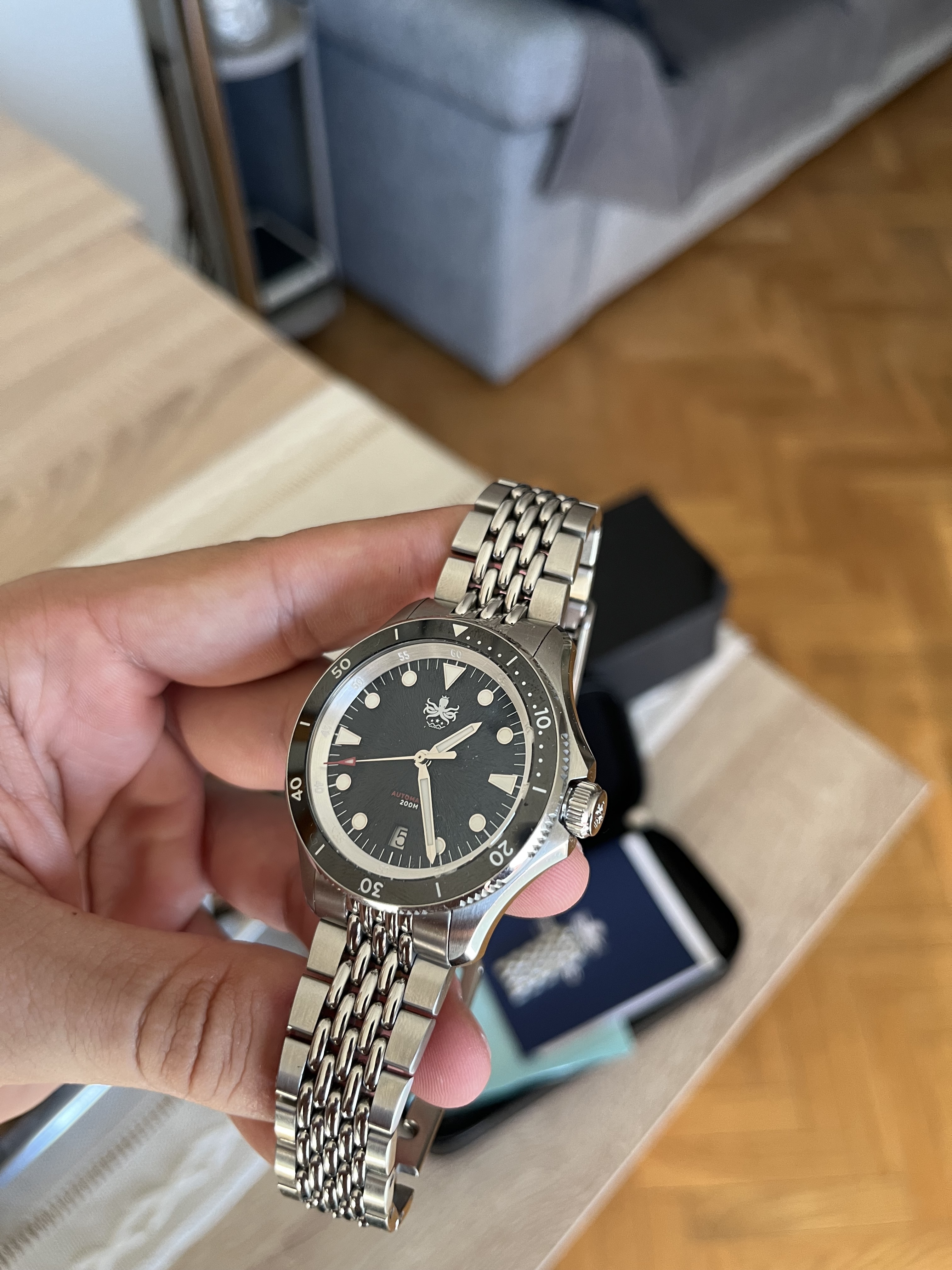 Este Phoibos Voyager de 39mm con un NH35 y esa estética inspirada en Tudor pero con personalidad propia.
