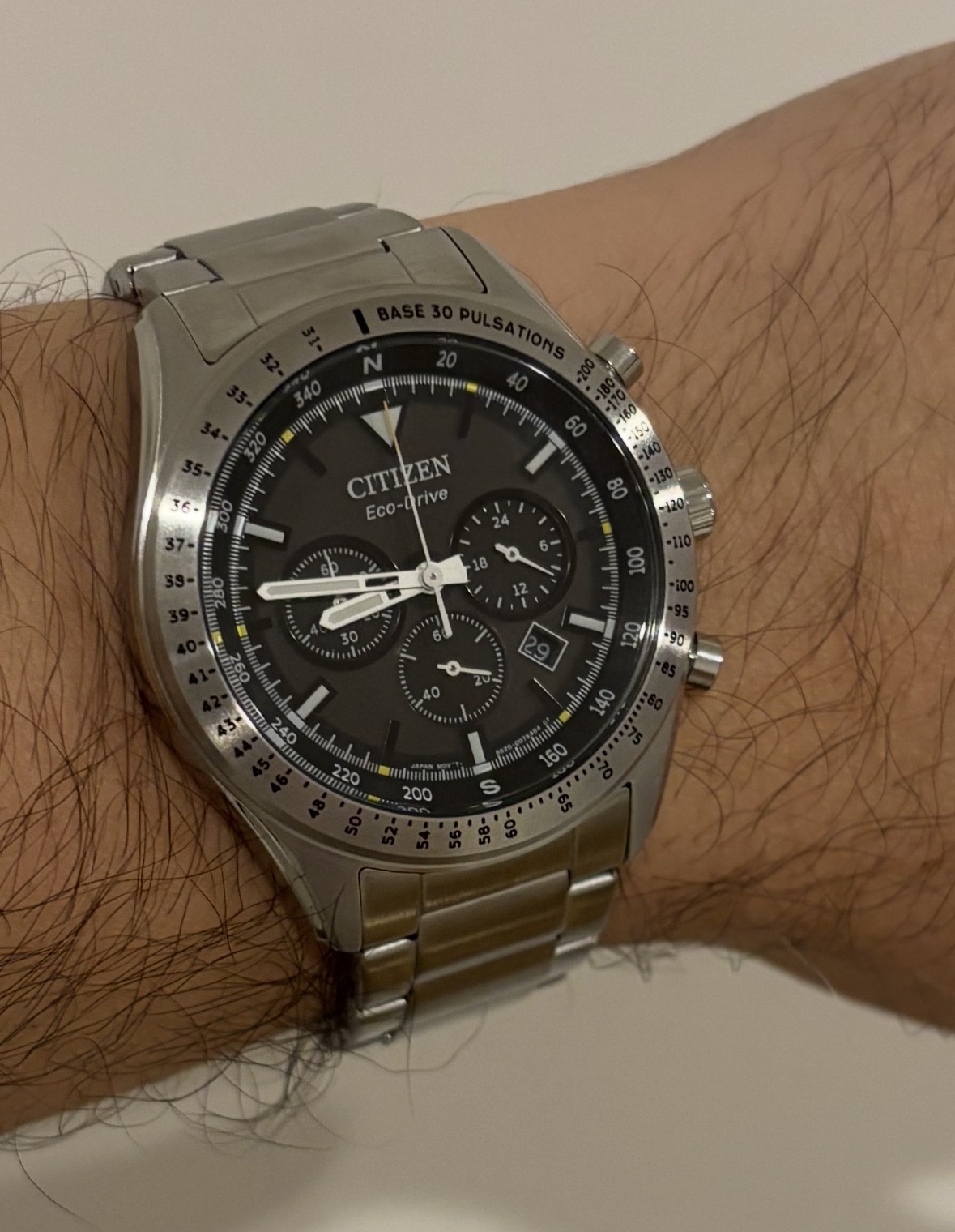 Por 150€ (nuevo en tienda, con envio incluido), solar, crono, tamaño contenido, que me gustara de diseño y CITIZEN, no esta mal. Punto debil, la correa metalica (una castaña, suena como un sonajero y es de esas que tienen los eslabones de metal fino doblado). Por ese precio, es lo que hay…