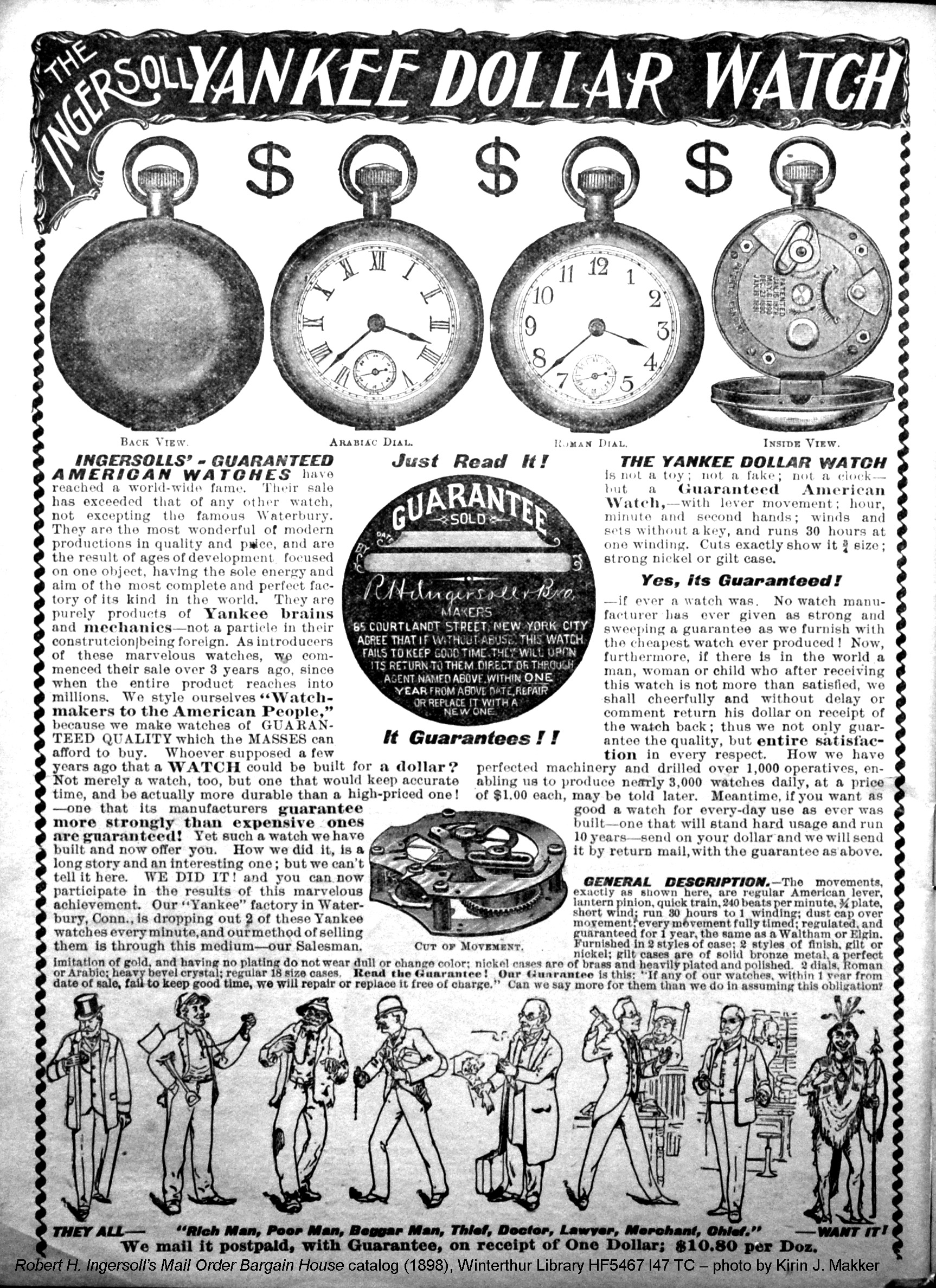 …pero para cuando Cartier hizo el primer Santos, Ingersoll y otras marcas llevaban años vendiendo relojes, sí, de bolsillo, hechos en gran serie a 1 dólar, lo que ganaba un obrero al día.