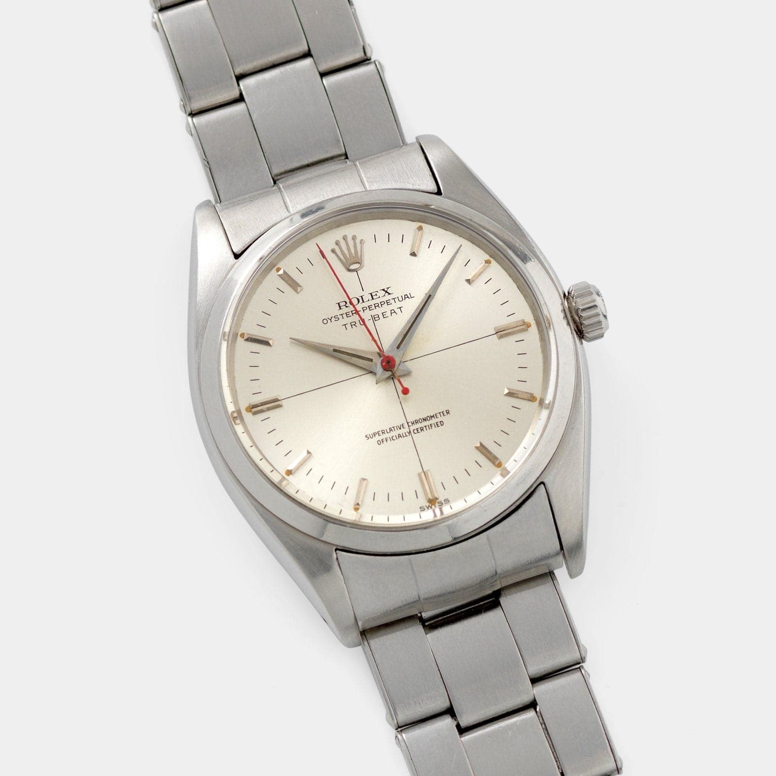 Rolex también fabricaría su modelo “segundos muertos” (aunque no he leído nada que relacione éste con sus experimentos previos con doble segundero), el Rolex ref. 6556 Tru-Beat, un reloj que se decía pensado para la profesión médica.