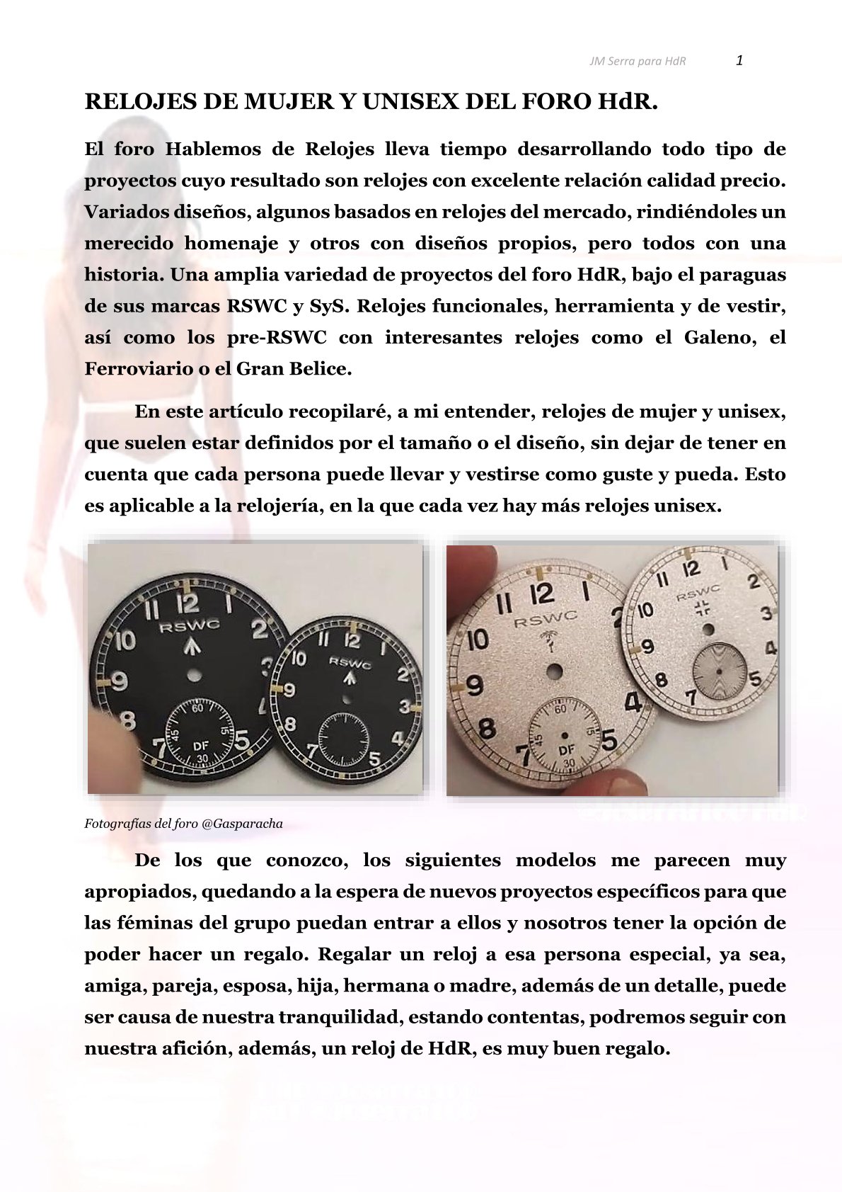 Y alguno más Como vemos una amplia variedad de proyectos del foro HdR, bajo el paraguas de sus marcas RSWC y SyS que pueden adaptarse perfectamente a la tipología unisex y de mujer. Relojes funcionales, herramienta y de vestir, así como los pre-RSWC o paralelos, con interesantes relojes como el Galeno, el Ferroviario o el Gran Belice*.***