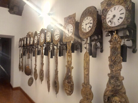 Pero ¿por qué lo cuelgo?, pues porque en el palacio se encuentra una extraordinaria exposición de relojería gruesa con relojes de pared, sobremesa y despertadores que paseando entre las galerías viéndolos y con un vinito de la mano la espera se hace placentera
