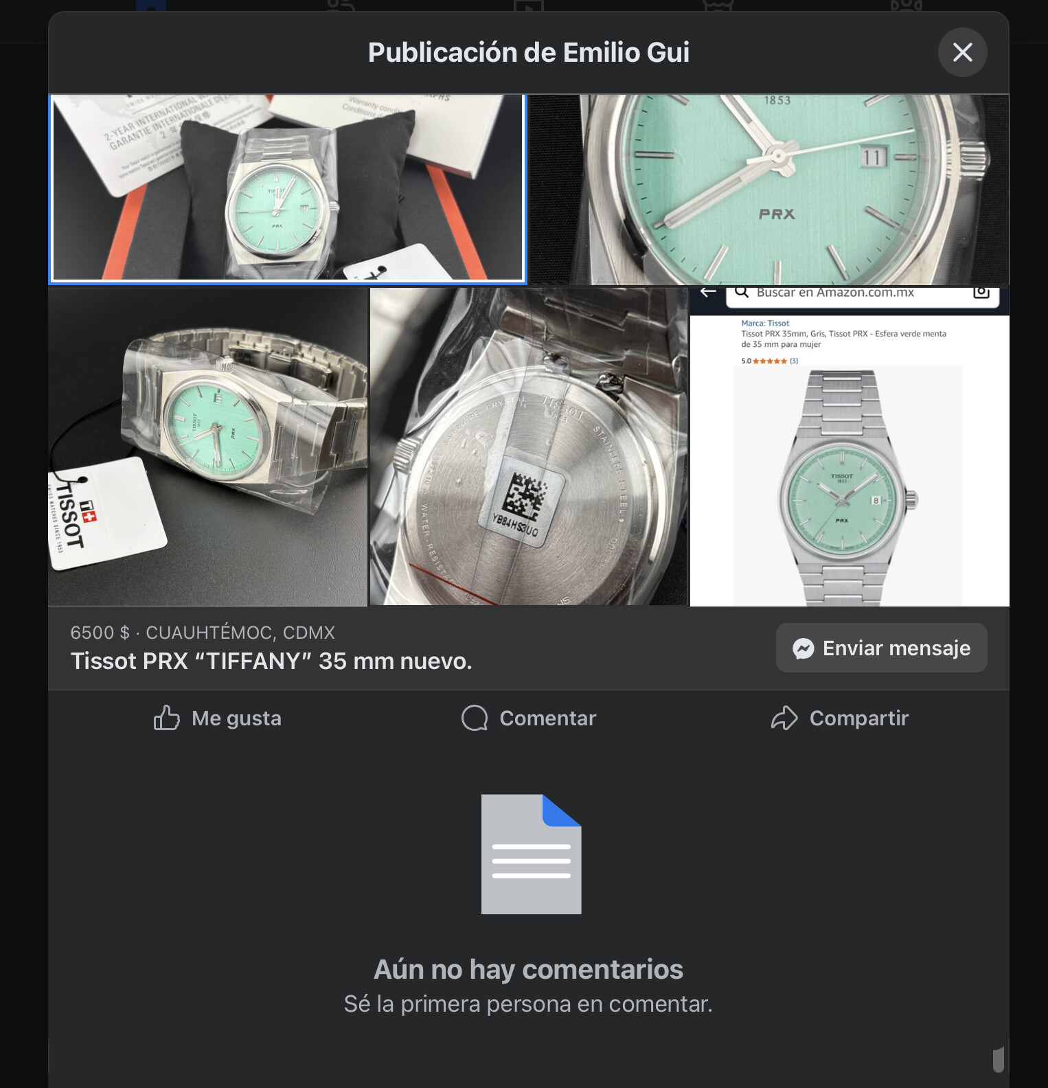Compré por Wallapop (con los pagos del Wallapop que dan un mínimo de garantía…) un PRX Tiffany a Relojes B2B, en principio yo todo lo vi ok y no me dio por revisar nada. Color, pulido, números de serie entre garantía y reloj. No obstante no comprobé nada en la página de Tissot ya que desconocía su existencia.