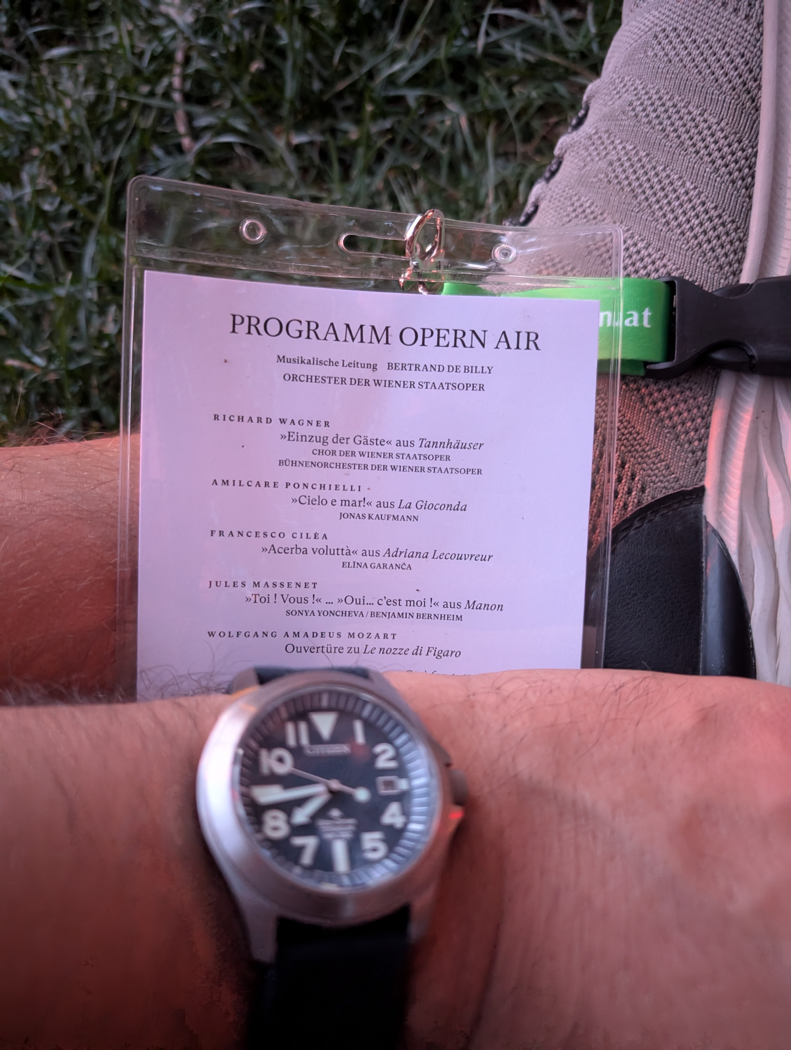 Por cierto que hace unos días el concierto de clausura de la OFM fue muy operístico, dedicado íntegramente a Wagner. Llevé este reloj de estreno al mismo.