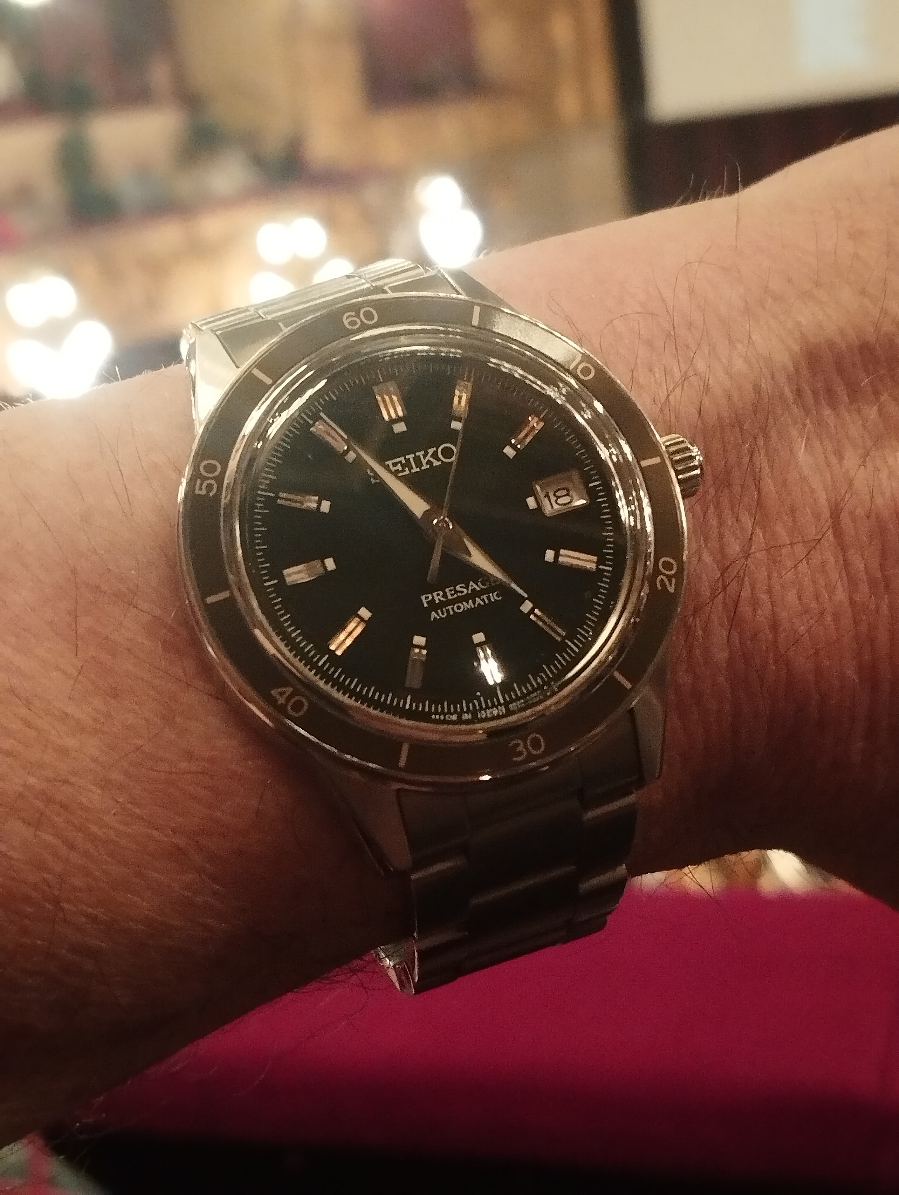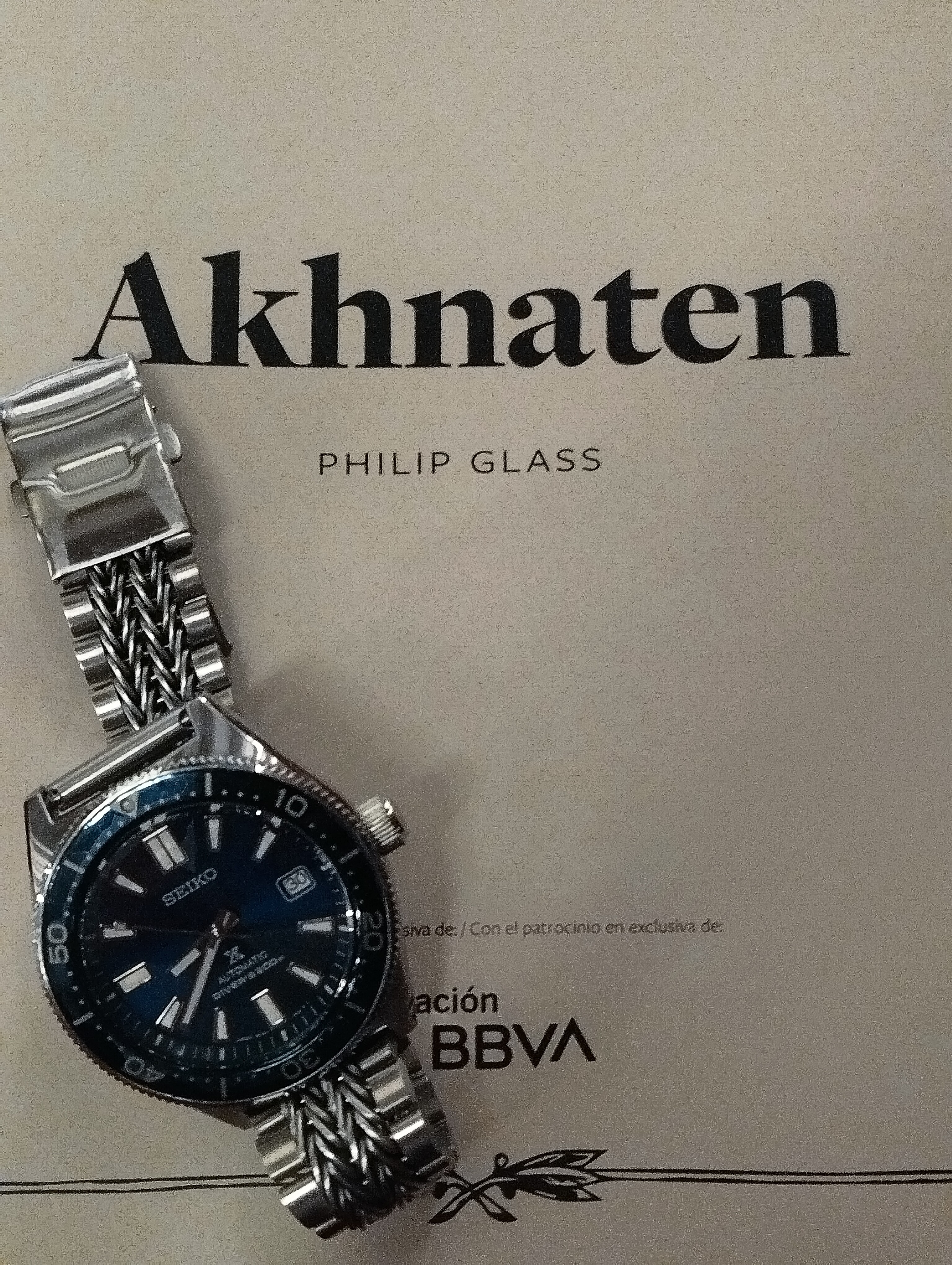 Hoy, 22 de noviembre, ensayo general con público de L’elissir d’amore, de Donizetti. Un montaje sin dificultades formales y dirigido a disfrutar de la función, que es muy divertida. El lunes tengo función oficial e iré acompañado por un reloj de marca invicta, hasta el momento, en todos los concursos de mal gusto, prometo muchas fotos. Hoy, para compensar, un precioso Seiko Presage 60’s.
