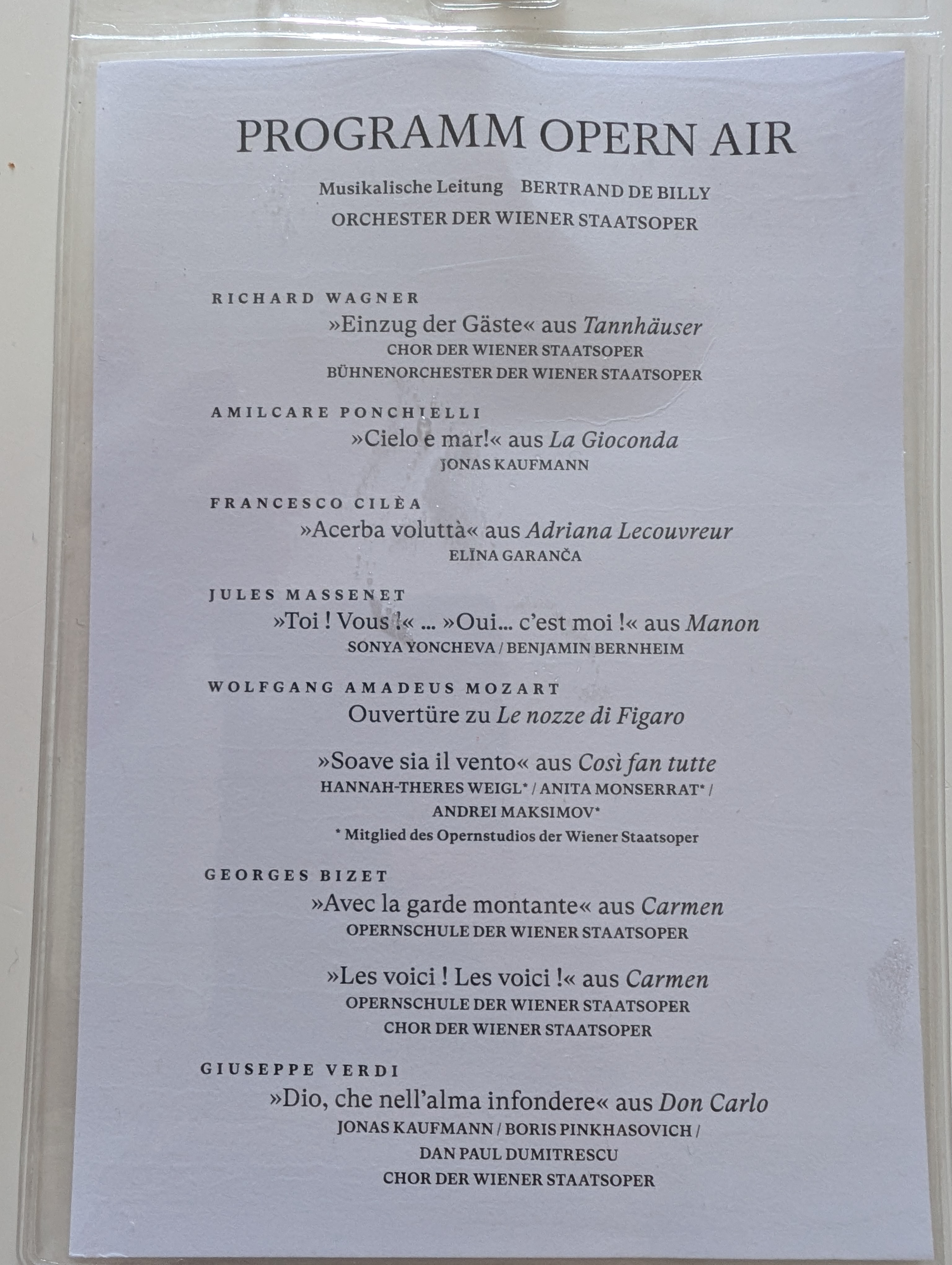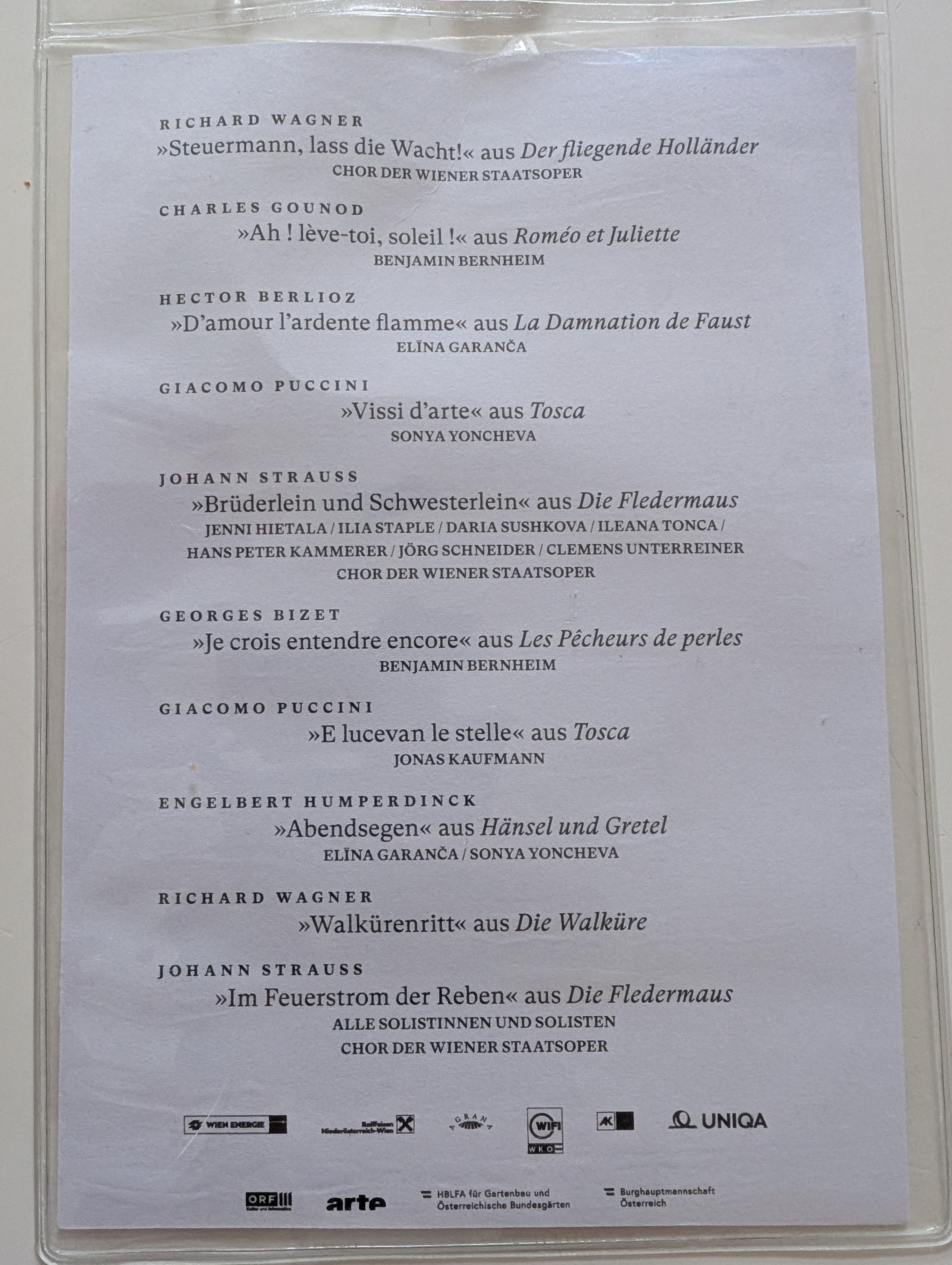 Bueno, el resto del programa es extraordinario, las arias de Tosca son lo mejor del repertorio y tres piezas de Wagner, es muy difícil verlo. El Murciélago (Fledermaus) es una juerga total, yo la vi la Navidad pasada en concierto y estaba lleno de bromas, morcillas y compadreo entre la diva y el director.