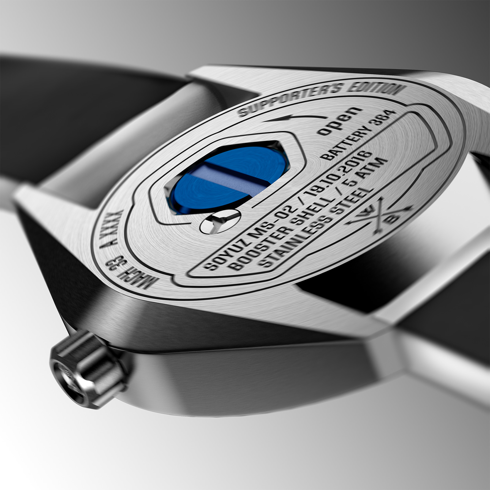 This material has not only reached an altitude of 85km, it comes from red SOYUZ lettering on the top of the rocket. The different cut-outs from the marking make these watches truly unique. This timepiece is the closest thing to the one and only real...