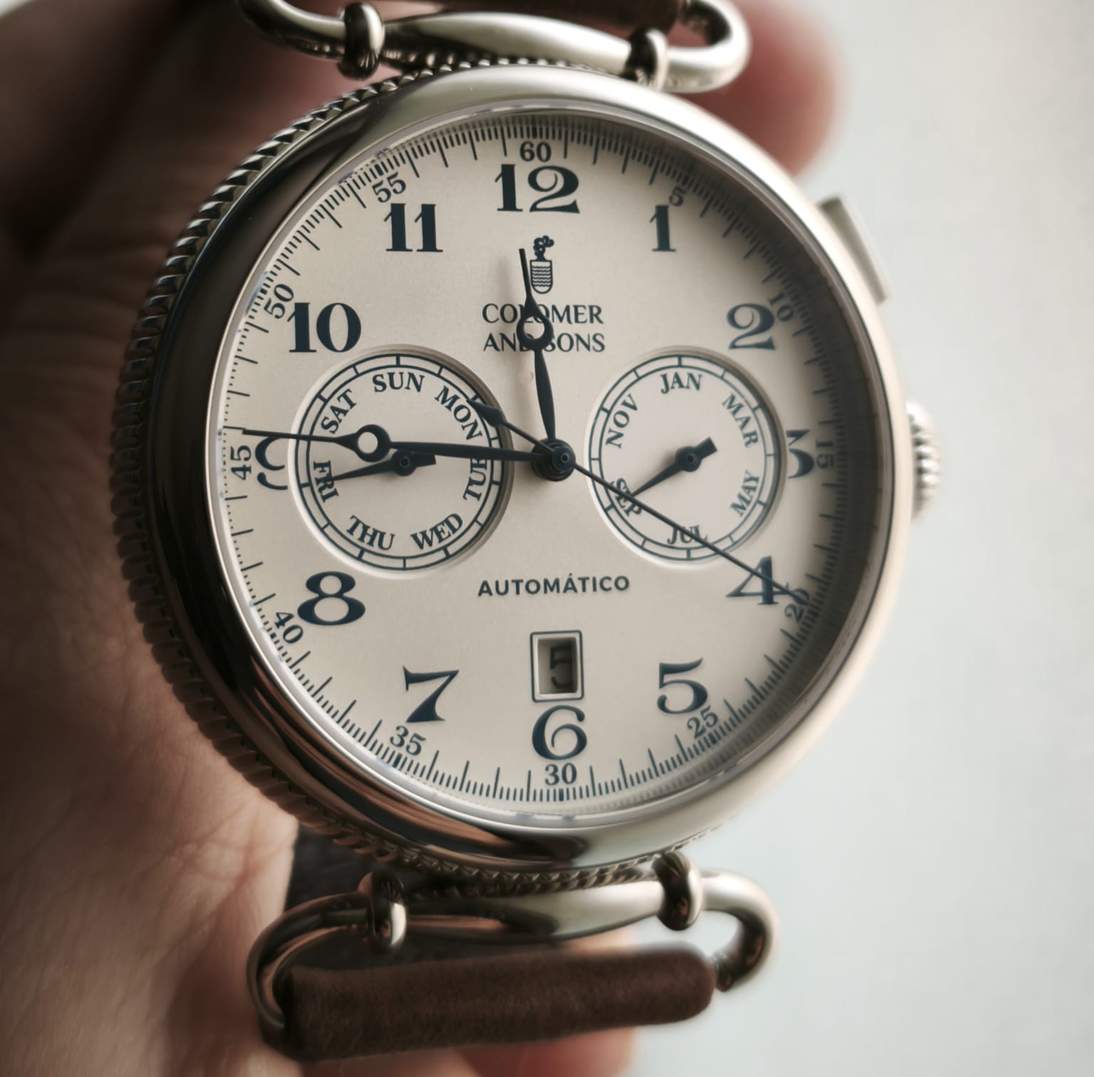 Os presente mi Colomer & Sons “Gran Retiro”, estaba realmente ilusionado y cuando llegó me gustó muchisimo mas la pieza , de verdad que me gusta este reloj.