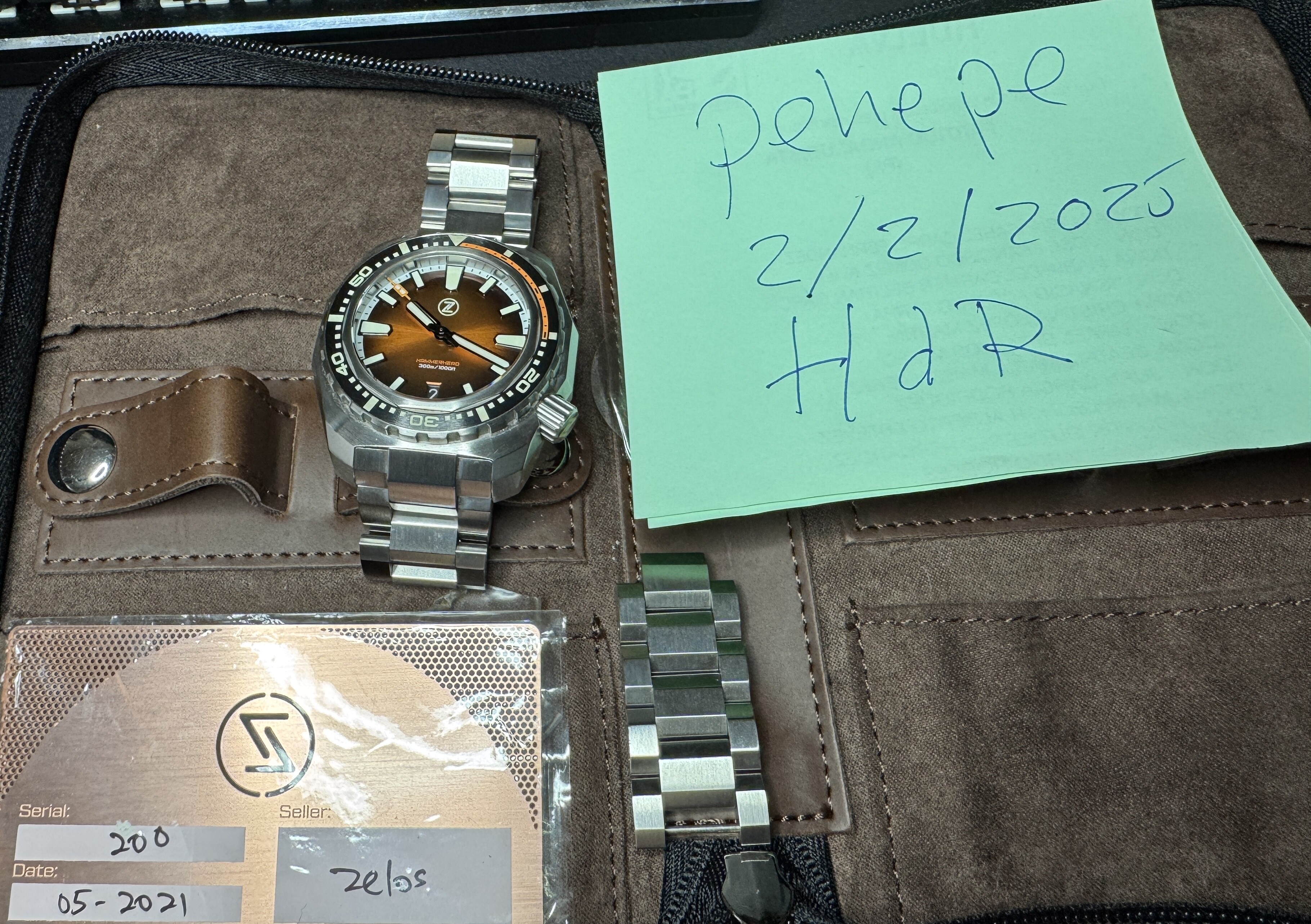 Se trata de un Zelos Hammerhead V3 300m Acero Naranja Quemado. Aunque el reloj es de 2021, pero está usado solo en casa en pocas ocasiones. La única salida fué al relojerp para ajustar el armis.