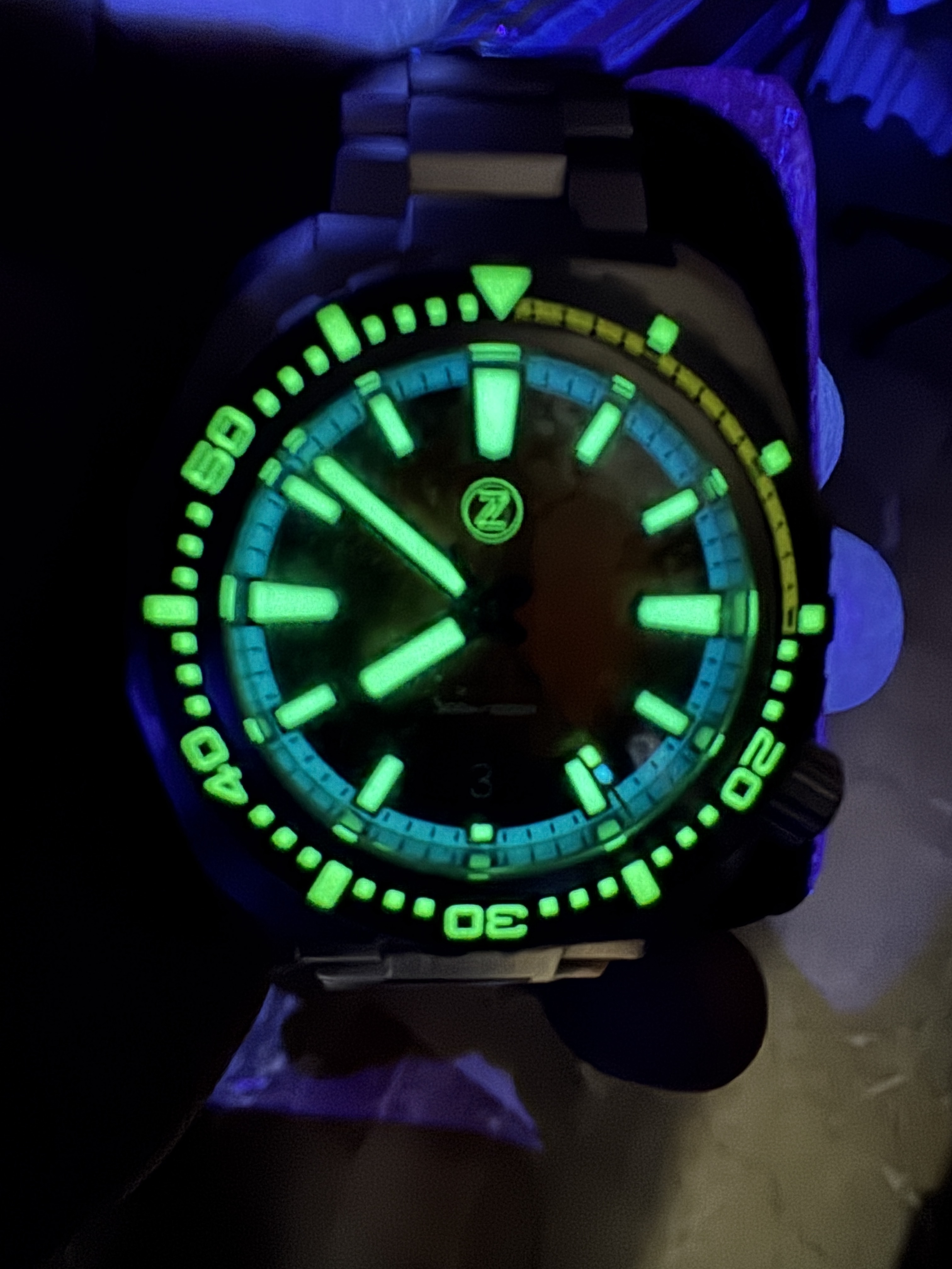 Resistencia al agua 300m. Cristal de zafiro con antireflejos.Lumen espectacular como podeis ver en la foto.