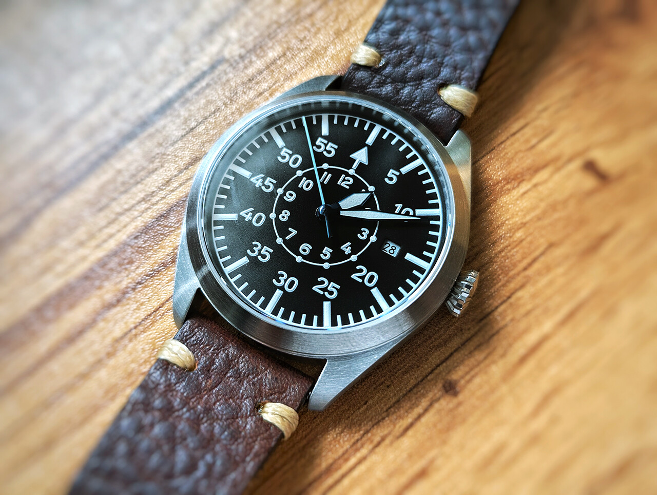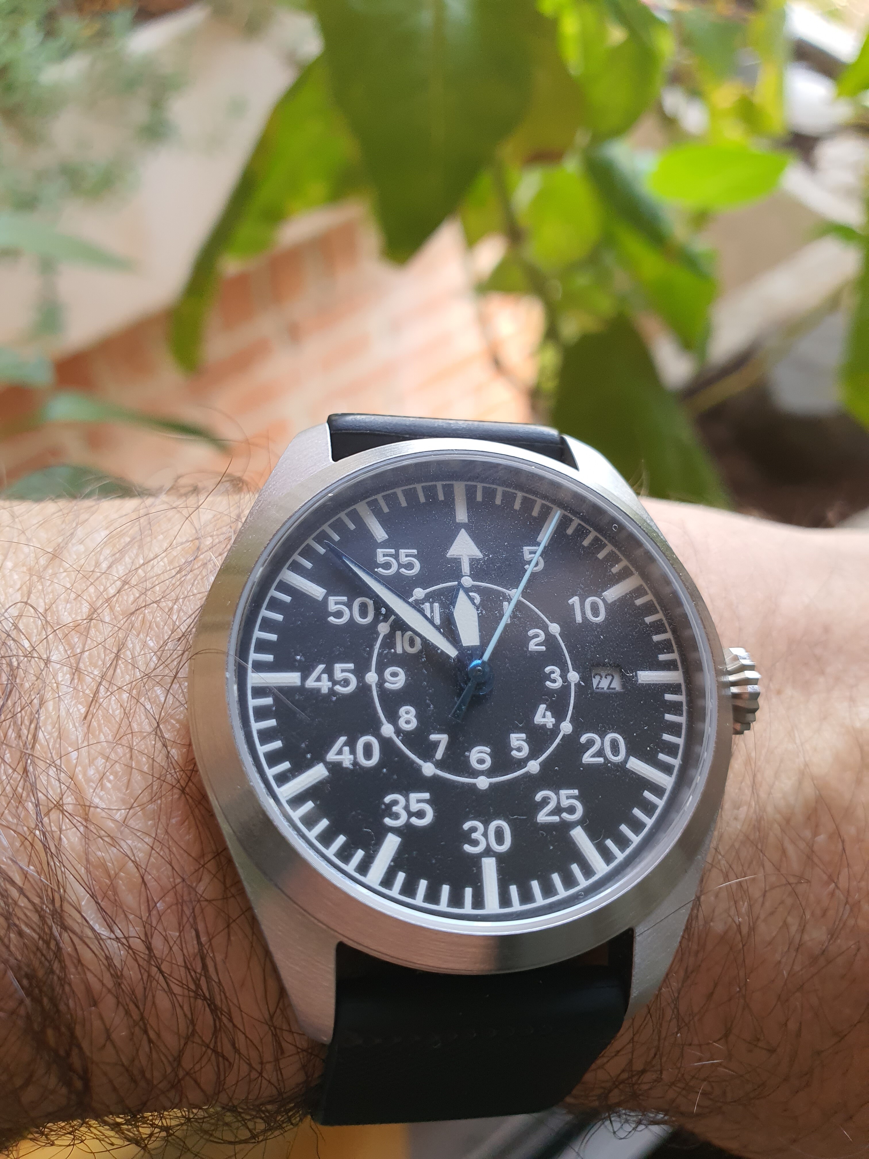 Es un reloj de observador tipo B del que históricamente no voy a entrar ahora mismo a contaros nada que seguramente no sepáis. Sino, en Google tenéis mucha literatura sobre este tipo de relojes de carácter militar, y de origen alemanán del que hay tipo A y tipo B. Este que tenemos entre manos es un homenaje al tipo B, y que se distingue del A por su esfera.