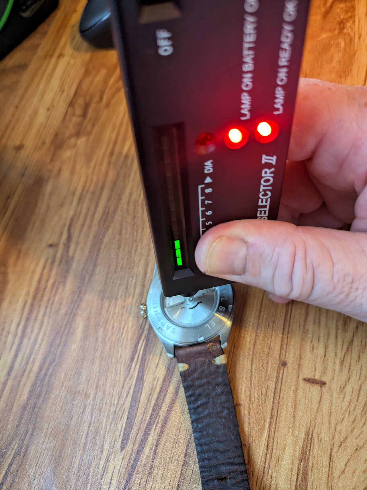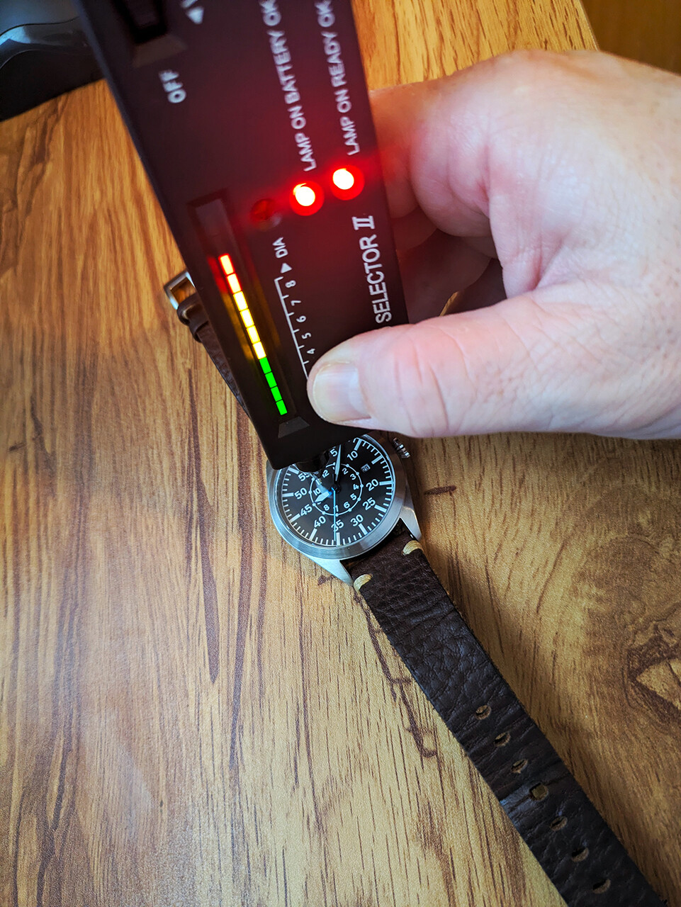 He hecho las pruebas pertinentes para comprobar que el vendedor no miente y como véis: zafiro delante (cristal de la esfera), y cristal mineral en la trasera.