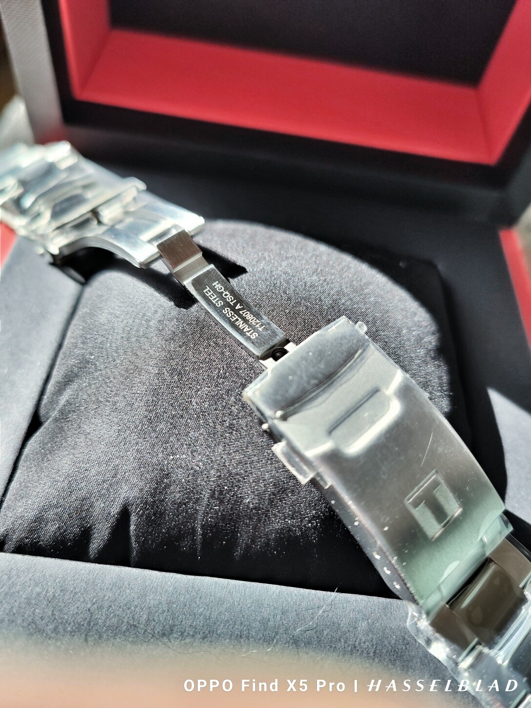 Armis de acero, solido, tipo Oyster con eslabones centrales pulidos, comodo. Cierre mecanizado y firmado por Tissot. Facil y para todos.