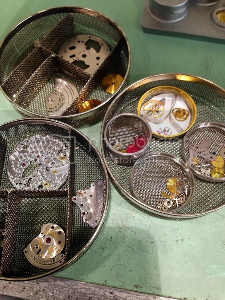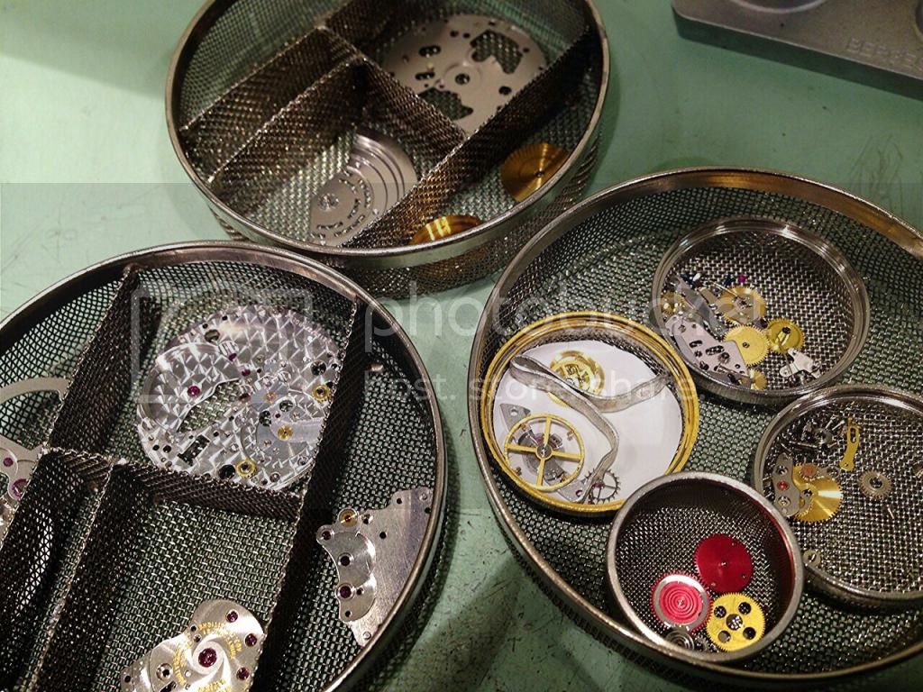 Desmontar, limpiar por ultrasonidos, montar y lubricar, cambiar juntas y ajustar, pulir eso solo es cosa de tiempo, material invertido en repuestos nuevos originales no los hay y si no hay piezas cambiadas el precio de la fornitura se la ahorran y si no cambian piezas no podemos valorar el mismo servicio ni que el reloj vaya como un tiro, nada pero nada que ver, si hay entrega de material entonces si podríamos decir es lo mismo a mucho menos precio, y yo solo busco saber eso y de momento sigo esperando y no para criticarlo si no para apuntármelo y el dia que necesite dirigirme a ellos, pero si solo es desmontar, limpiar pulir etc, lo que se ha visto en esas fotos eso ya me lo hacen y mas cerca de casa y tambien por precios de menos de 200.
