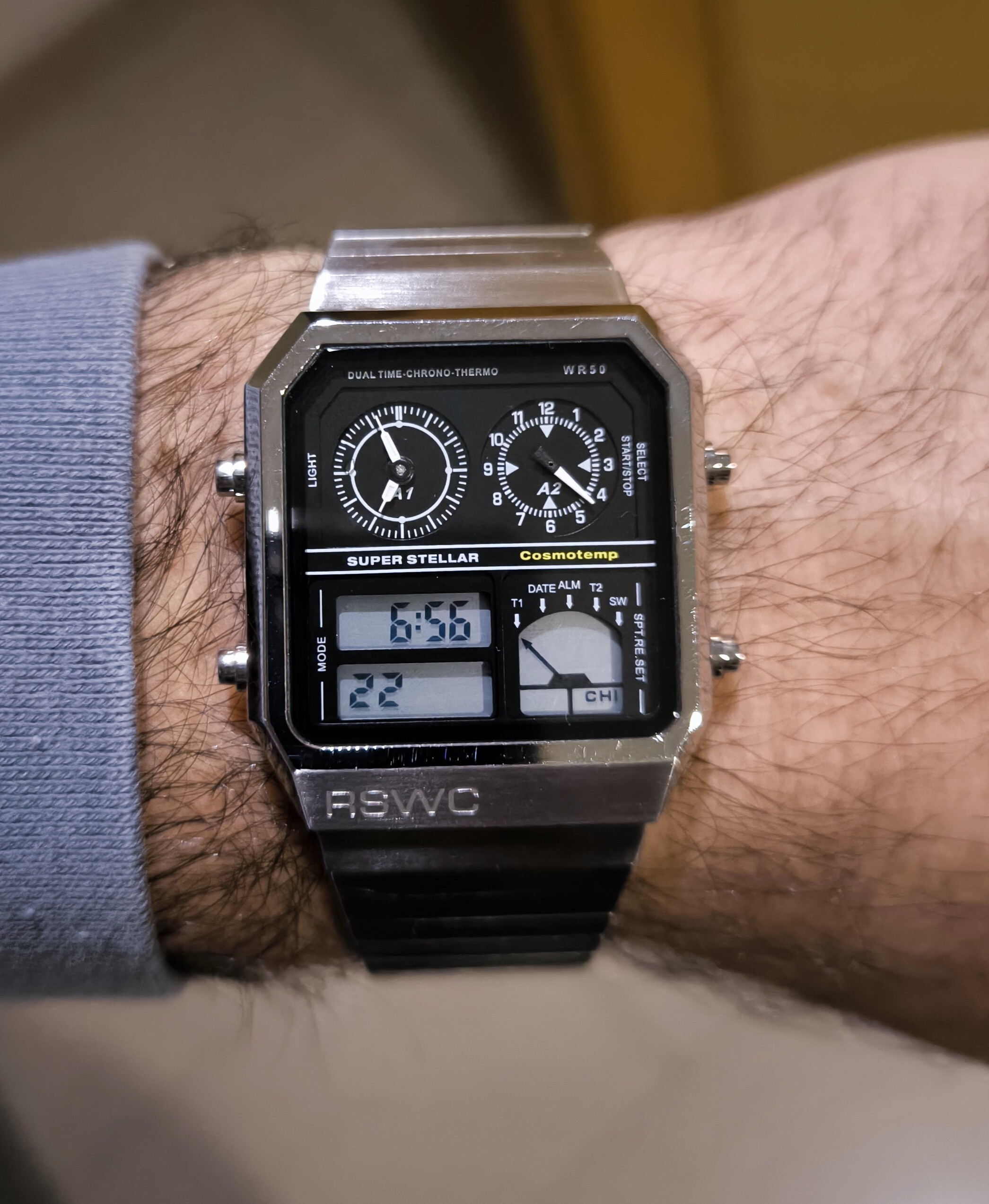 Si, se usó un calibre Seiko Epson VS75 solar, con movimiento de trotadora fluido, que va francamente bien.