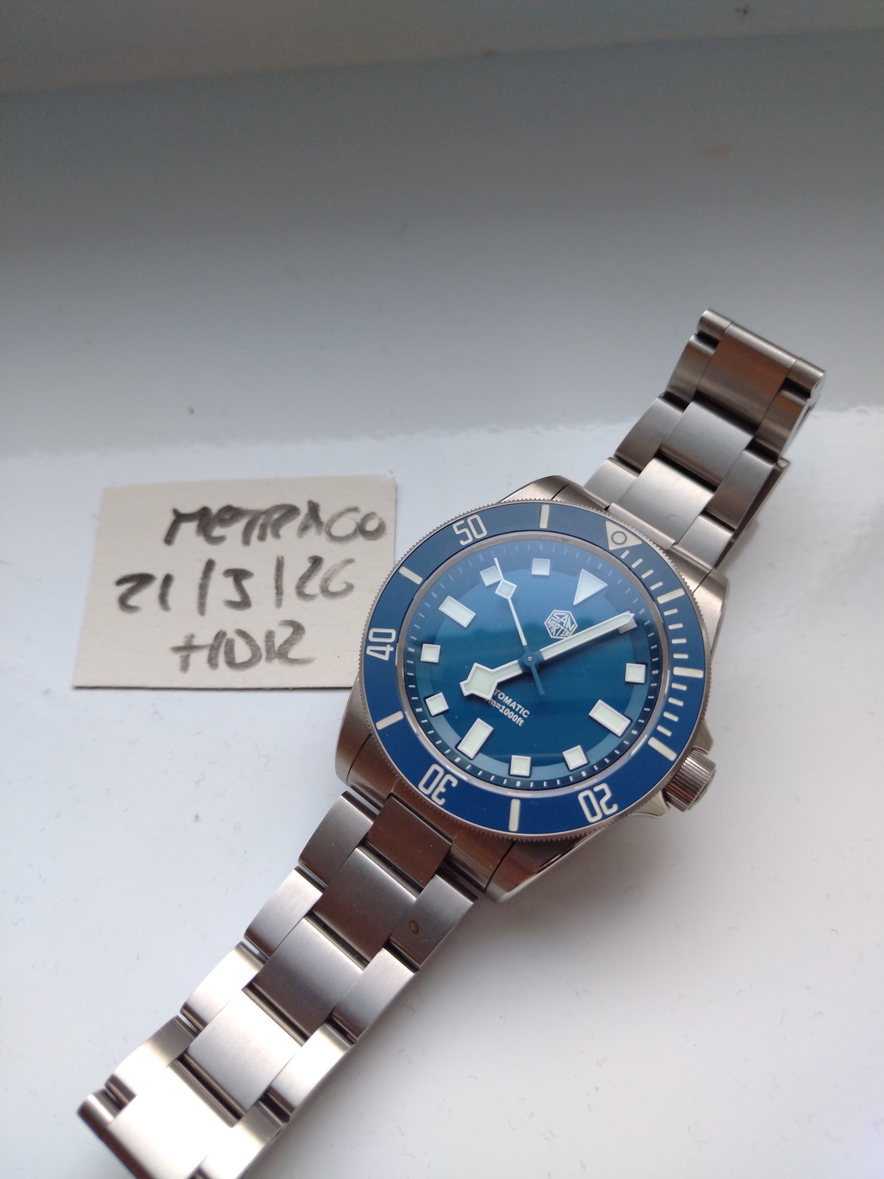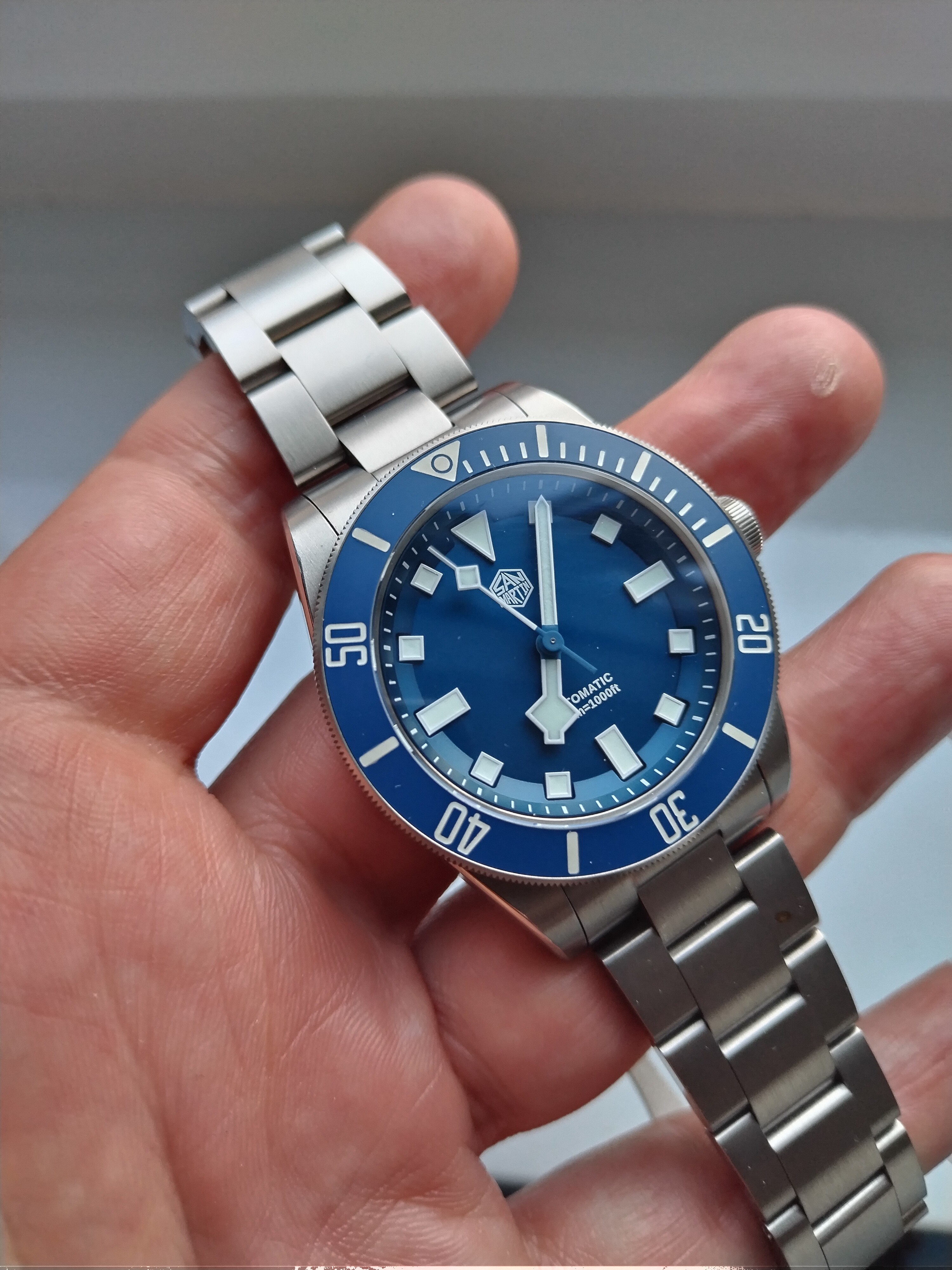 Tiene una caja de 39mm sin corona, cristal de zafiro y lleva una nh35 latiendo en su interior. El cierre ,con su extensión de buceo es impresionante. Va completo