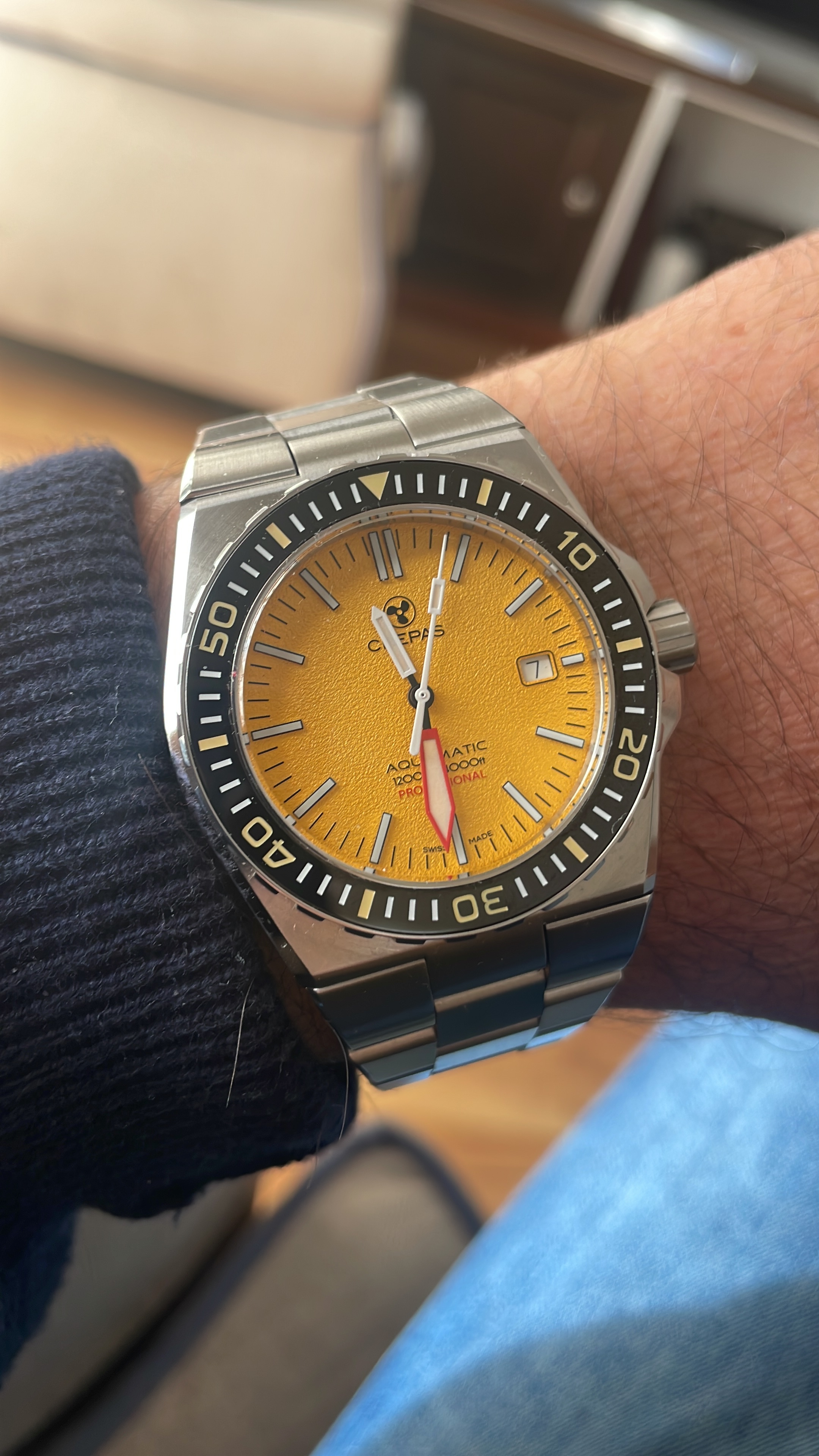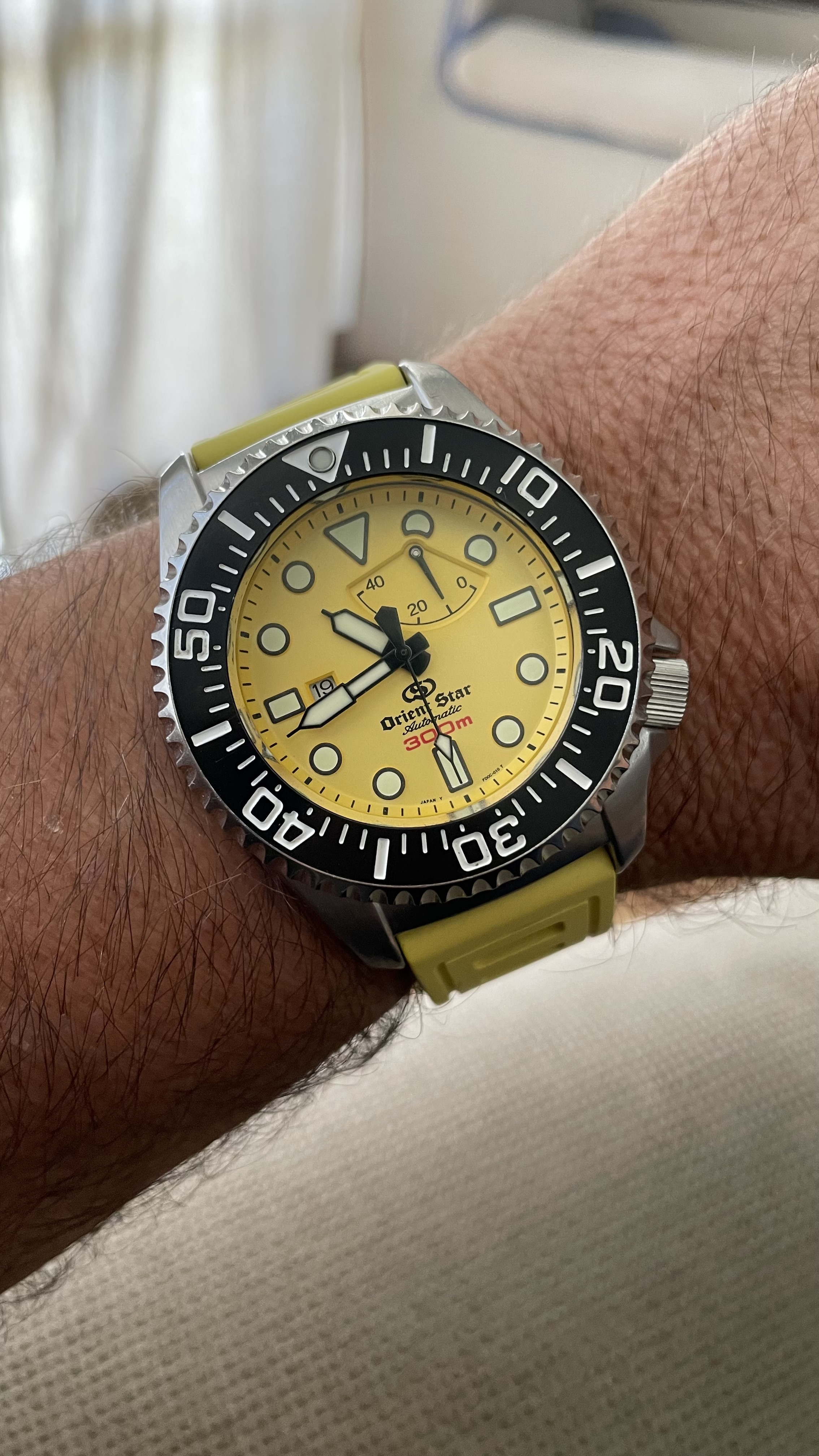 Sabia de la existencia de las versiones de Orient con dial Blanco, negro y rojo pero no un Orient Star amarillo.