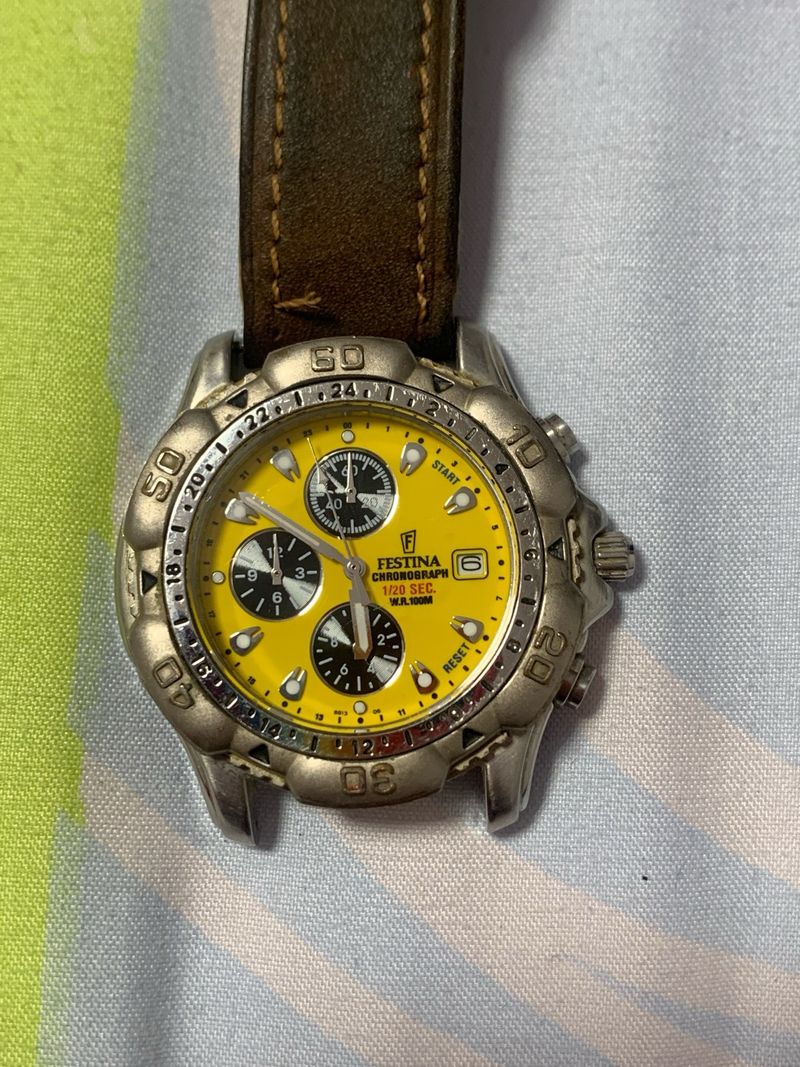 Actualmente no tengo ninguno, pero en mis comienzos en esta afición creo que el segundo o tercer reloj que tuve fue un Crono Festina con dial Amarillo comprado nuevo a mediados/finales de los ‘90, como este: