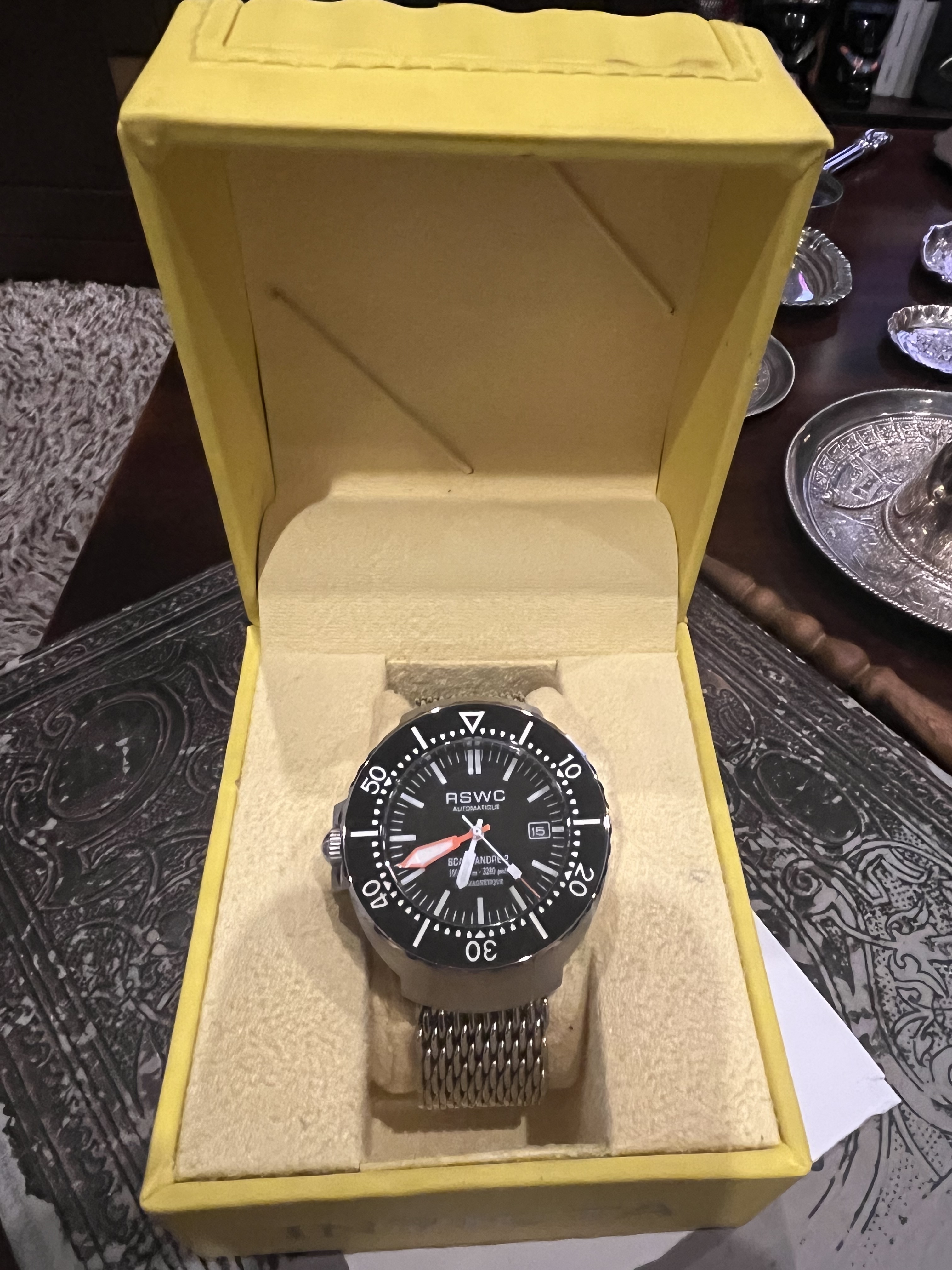 Pues otro que busca forero que le dé una vida activa y como se merece, dos puestas literalmente hablando, reloj de reestreno, una BESTIA de HdR cuyas características técnicas las podéis encontrar en la presentación del proyecto. Se trata de la edición PURISTA con corona a las 9. El precio como siempre casi por lo que costó en su día con reserva, cambio de divisa, envío etc… 275€ puesto en casa en la península, os dejo unas fotillos y cualquier cosa por MP. Se envía en una caja invicta amarilla.