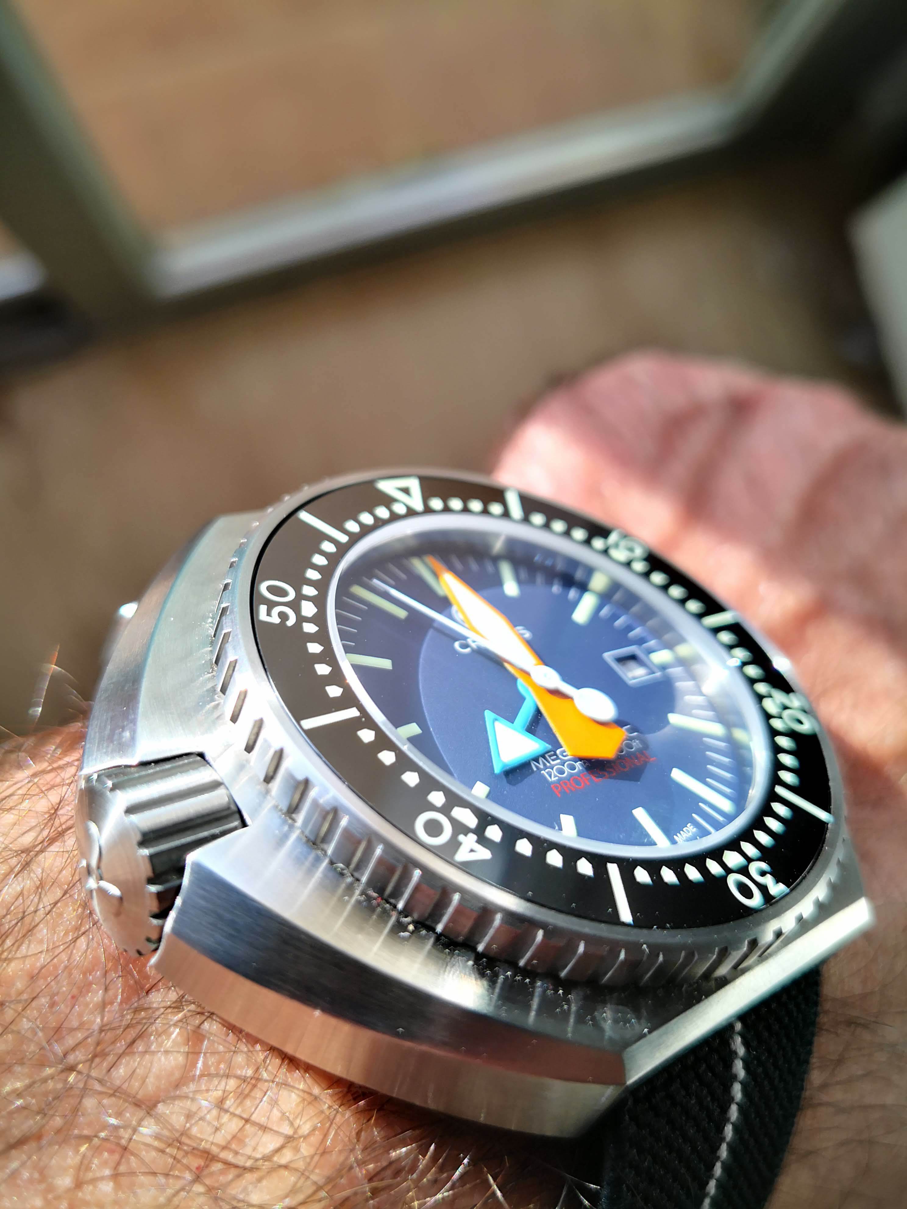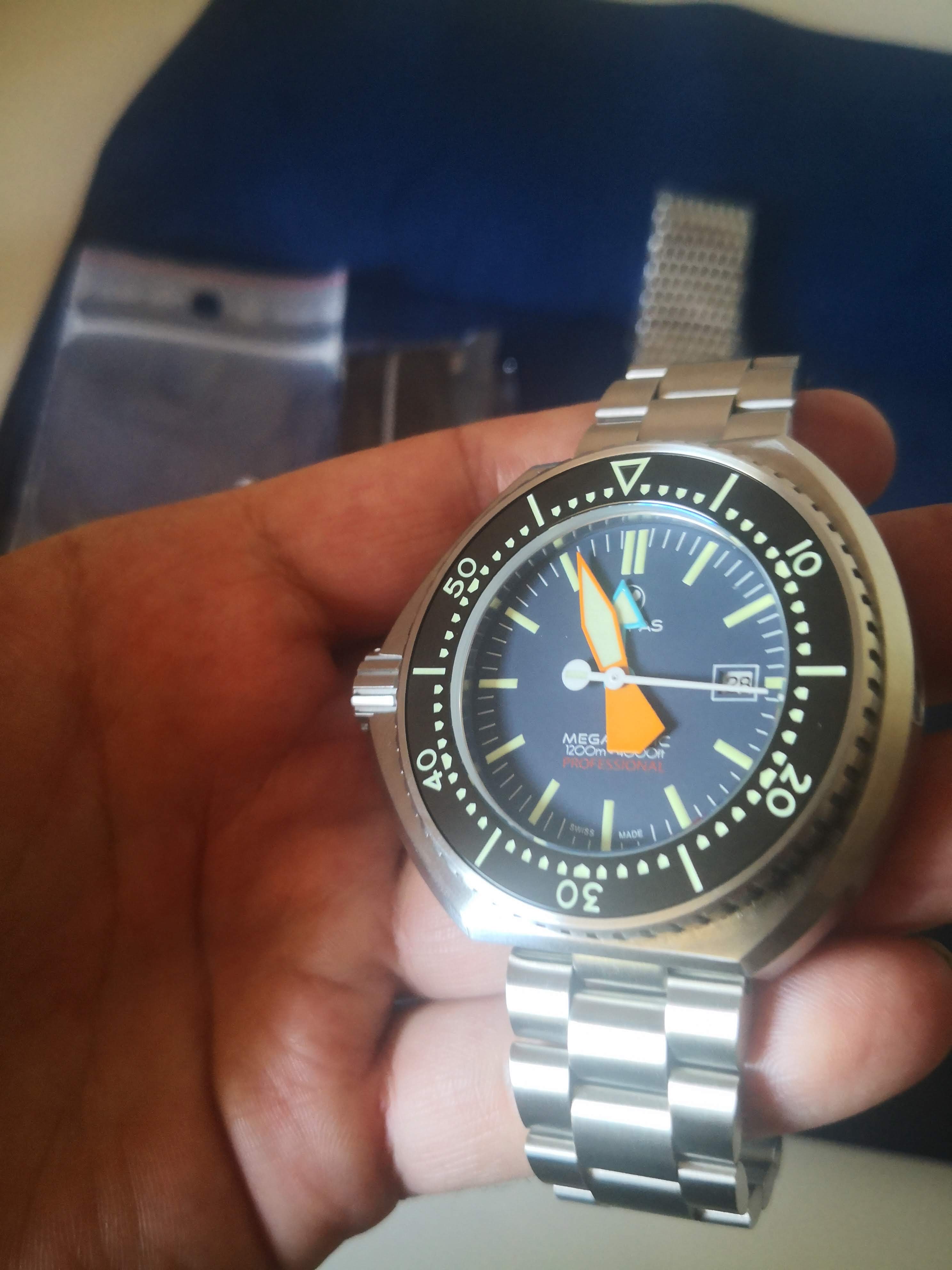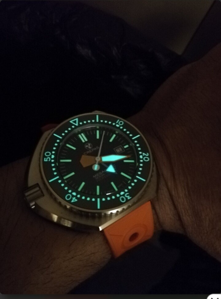 Yo he tenido el Megamatic, aunque no me arrepiento para nada haberlo vendido te go que reconocer que la caja es bastante peculiar además de ser un reloj que le síenta bien todo lo que le pongas, no me importaría si saliese buen de precio pillar uno