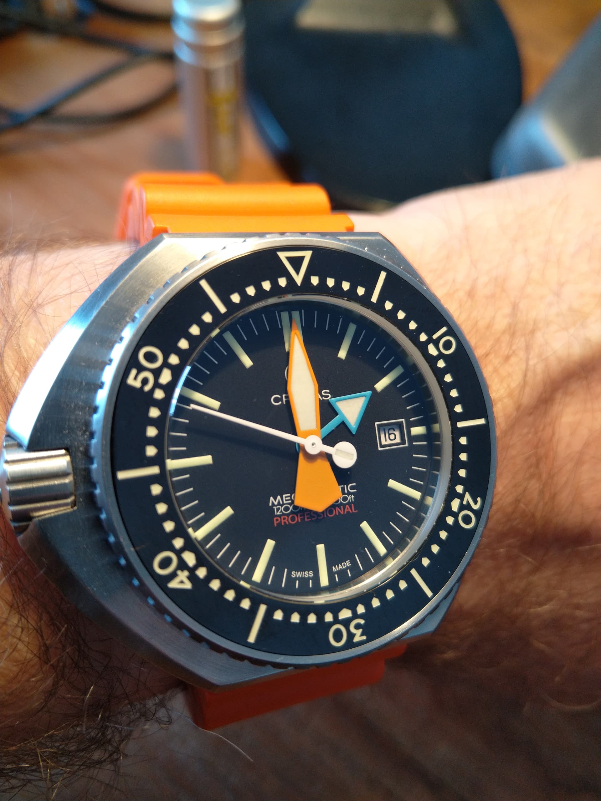 Hay alguna foto de alguien o experiencia sobre cómo queda el modelo a las 3? Esa caja del crepas ese entonces es la misma dada la vuelta no? O hicieron alguna modificación al diseño (a parte de las obvias) como el dial, fecha, etc que se tuvo que hacer en el escaphandre 2