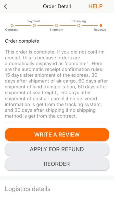 Yo igual. Desde el día 7 que pasó la aduana, entregado a un mensajero local y Alibaba da el pedido por terminado y transfiere el dinero al vendedor; lo acabo de ver en la aplicación.