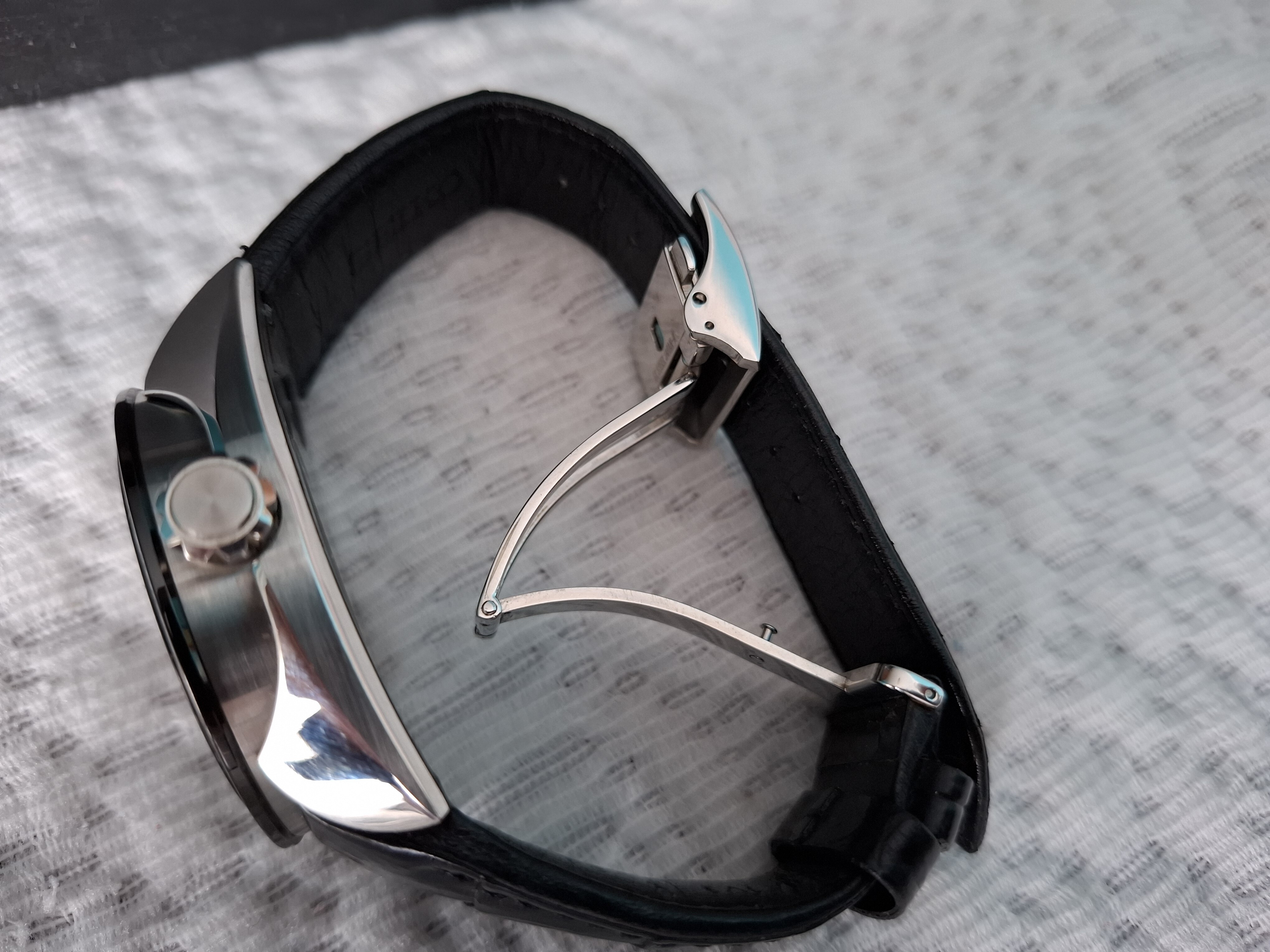 Remonte manual y carga Automática. Caja de acero,pulido a mano.Zafiro sin reflejos. Correa piel original con cierre firmado.Un reloj de -Samurai-.