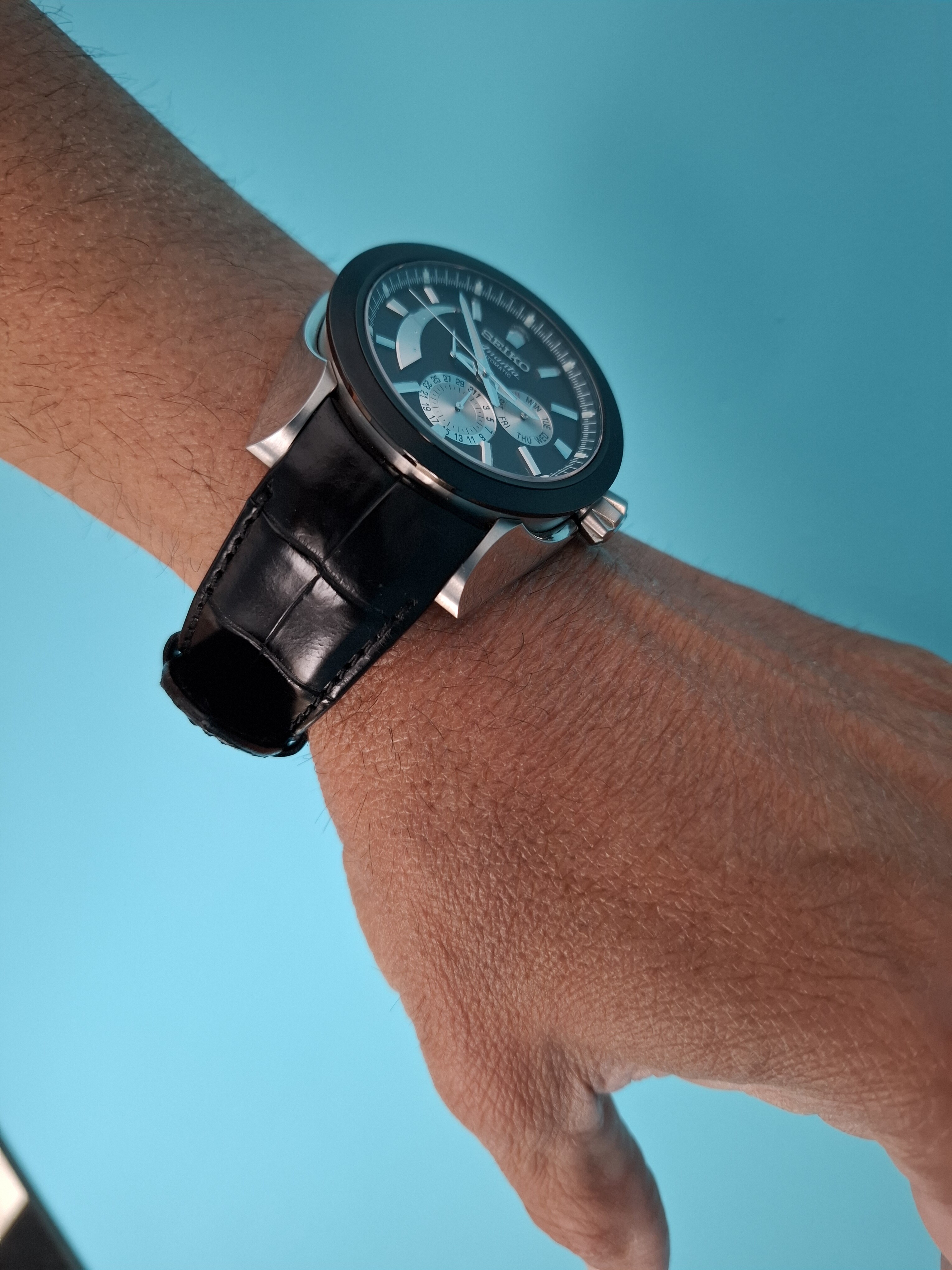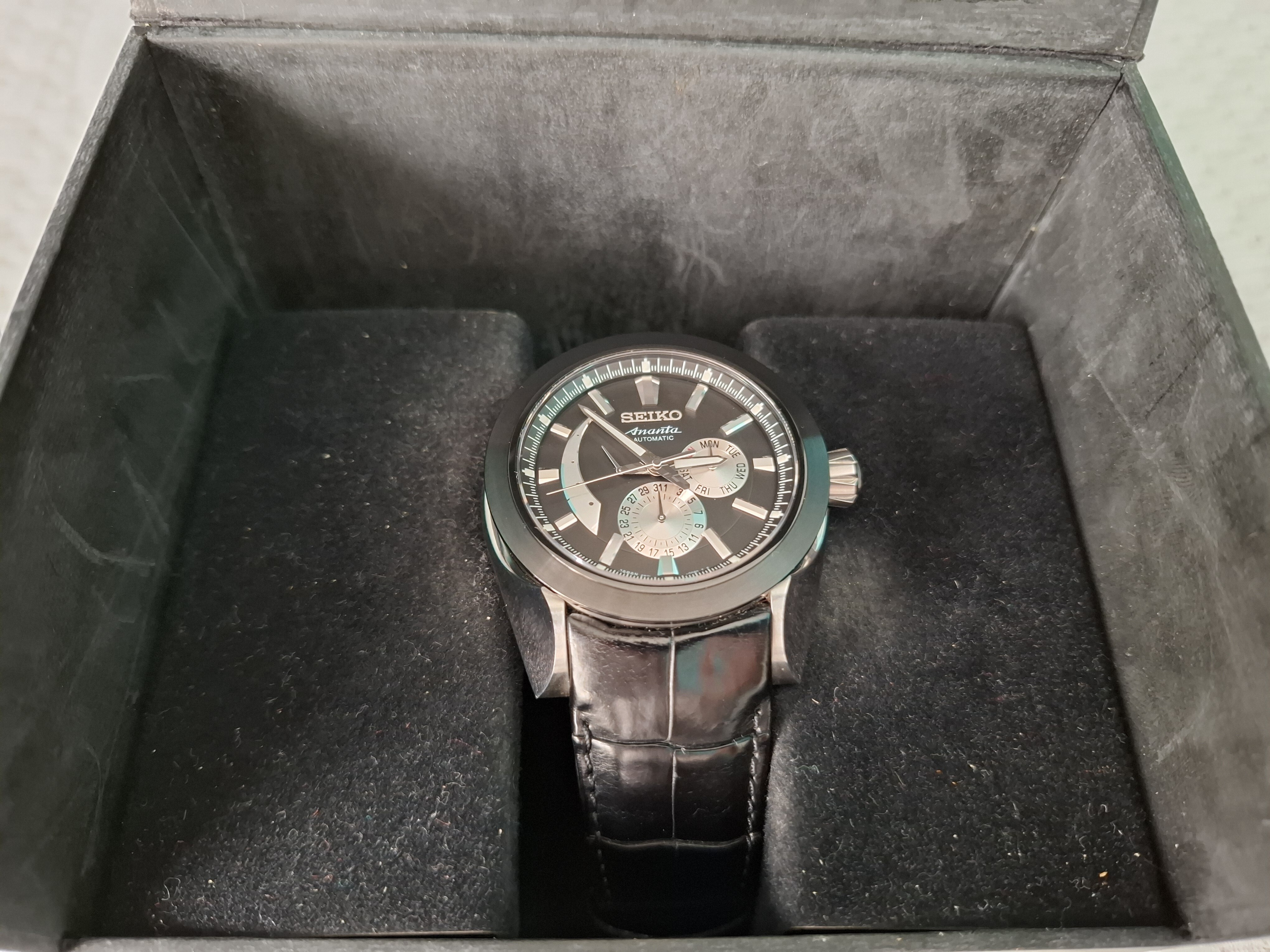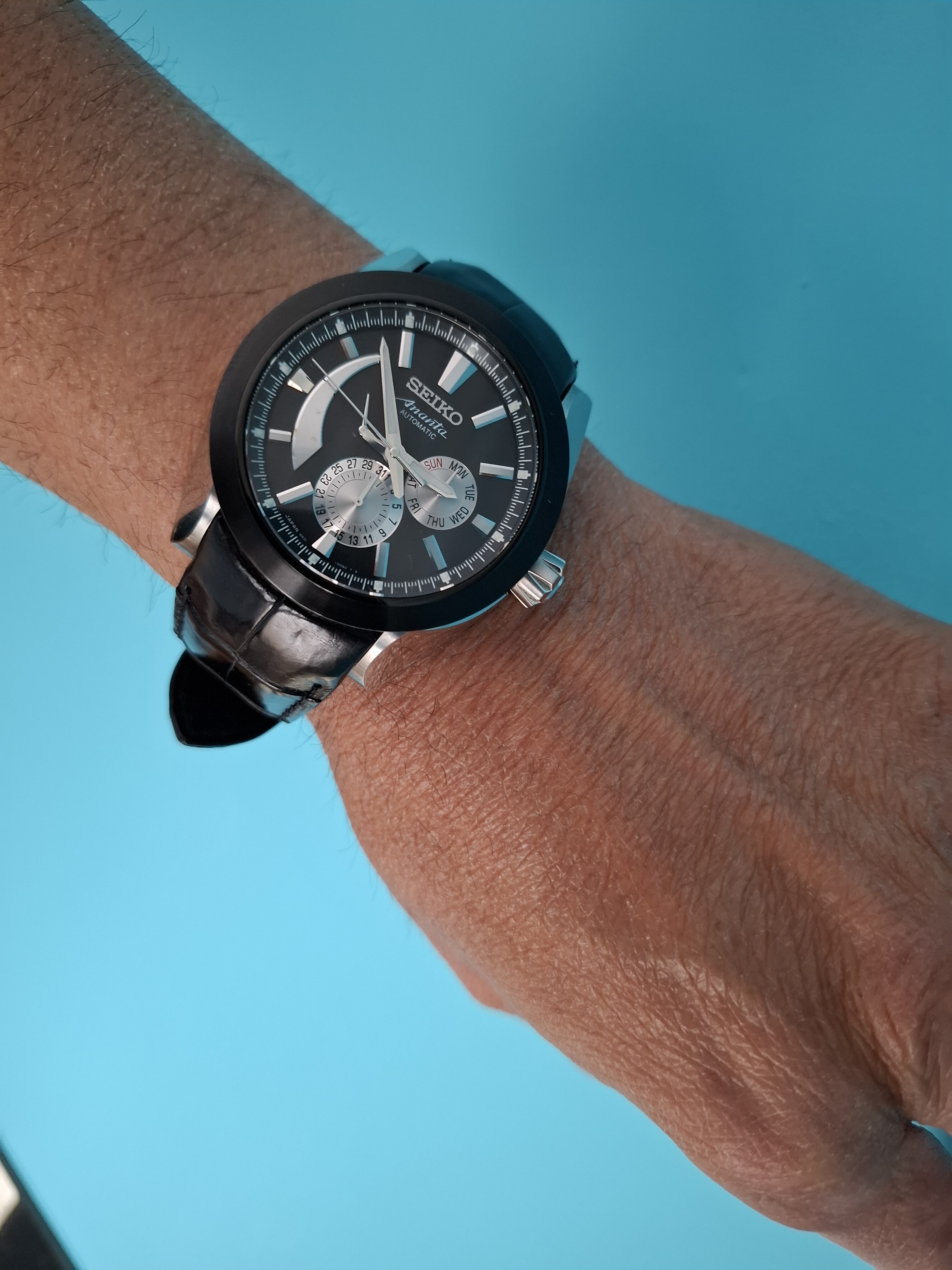 Un Seiko poco visto . Se trata de un Ananta con doble fecha y reserva de marcha en sus correspondientes subesferas.