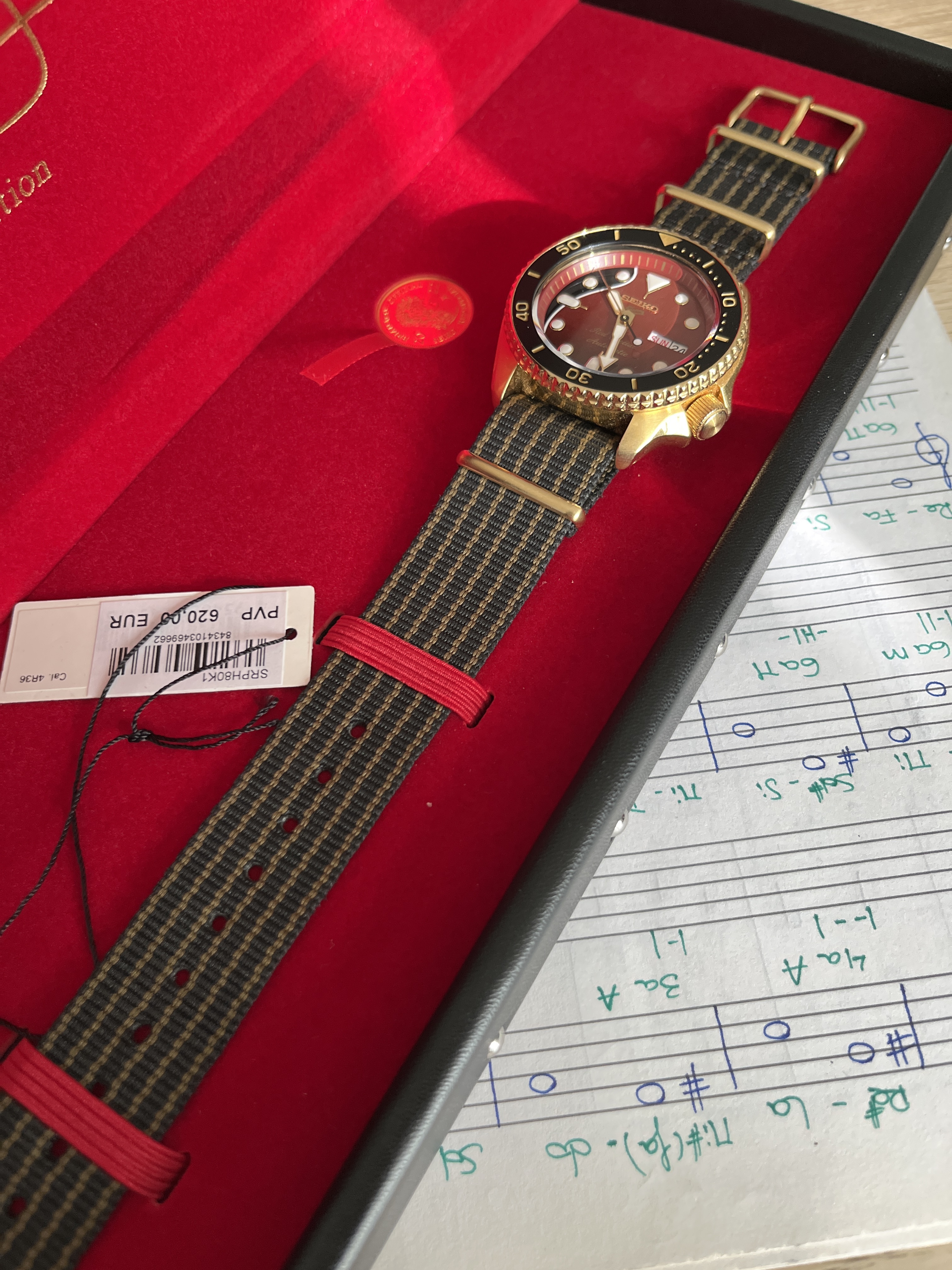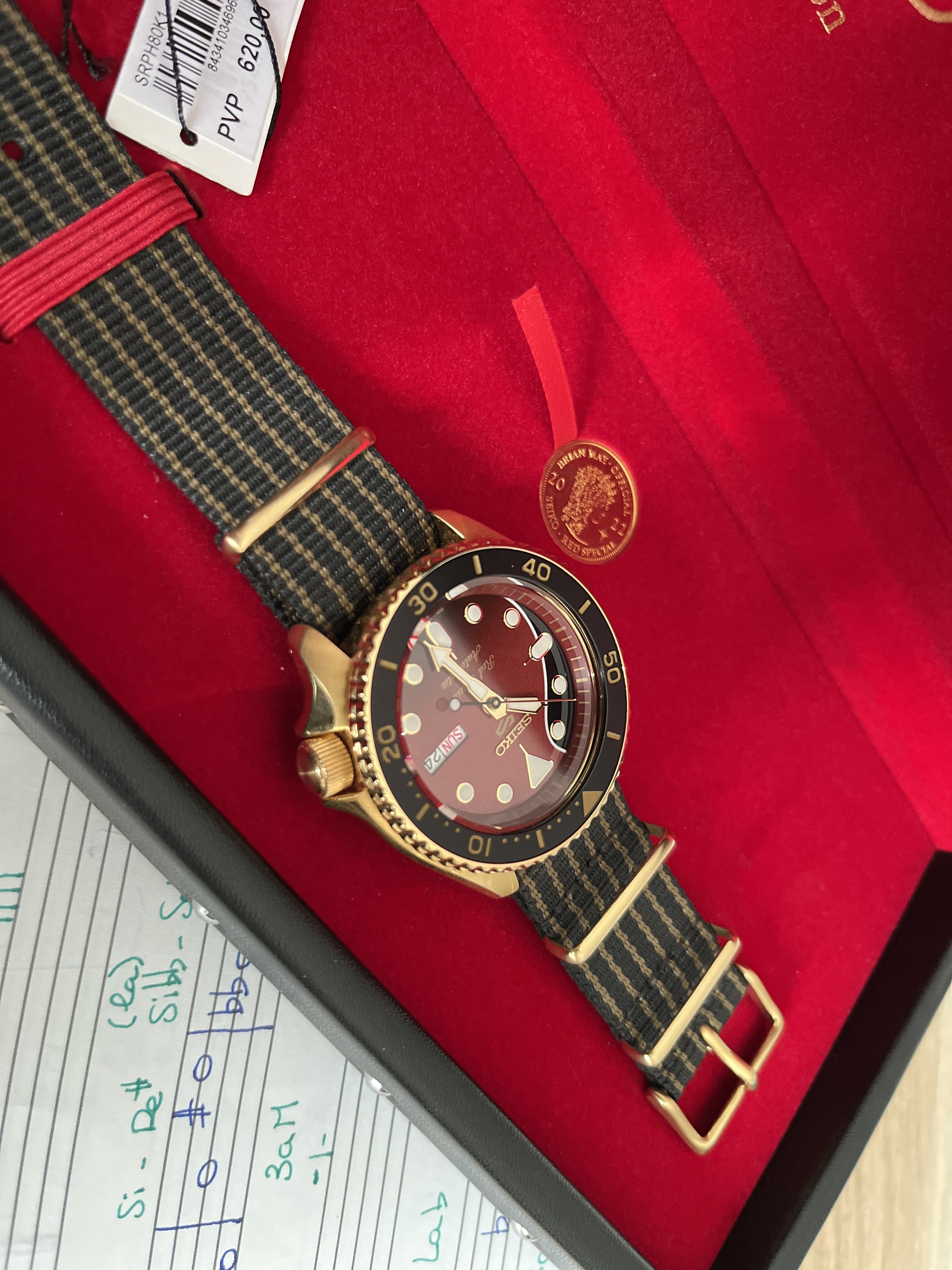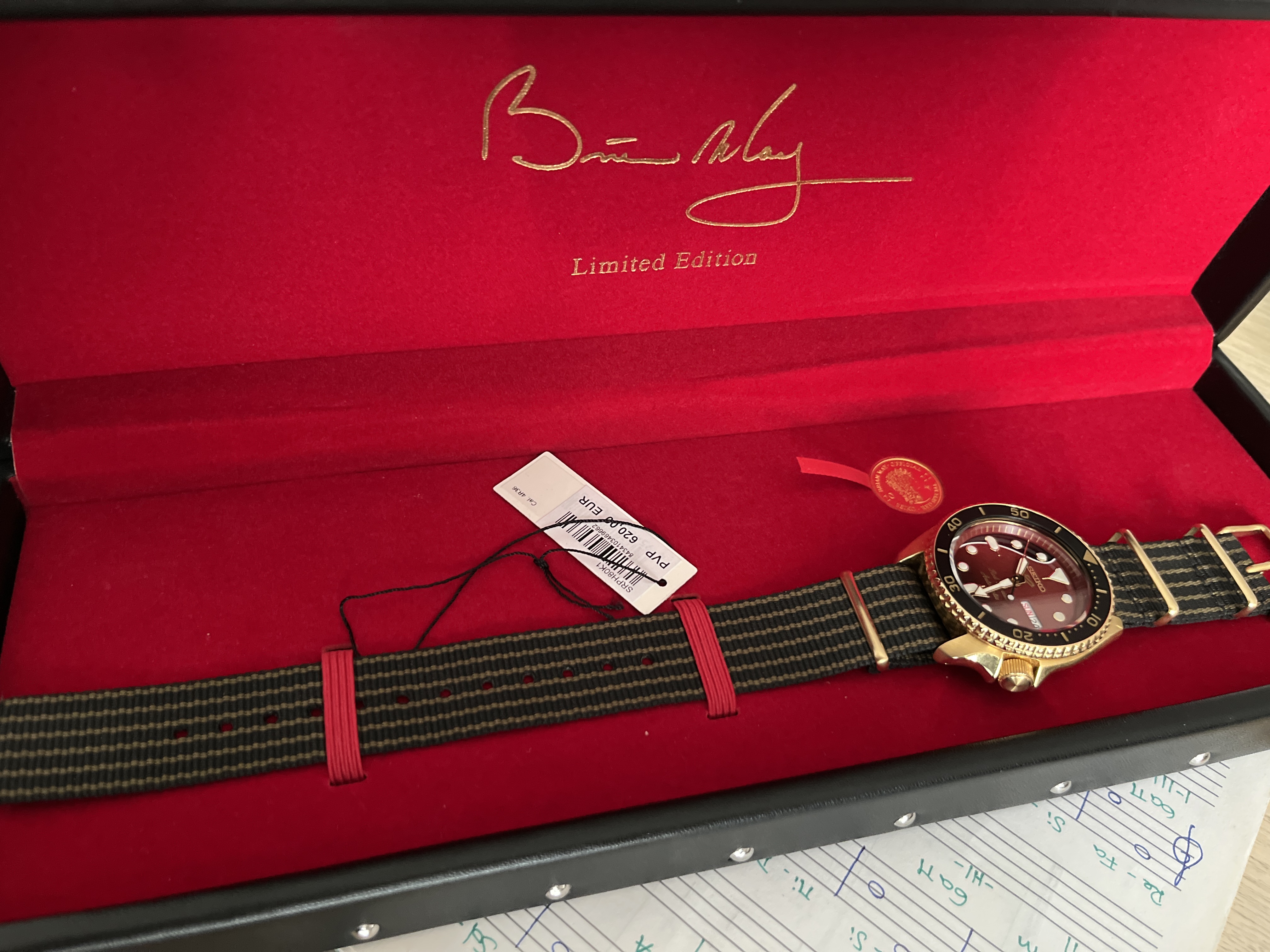 Buenos días. Pongo a la venta mi Seiko Brian May 2. Con caja y papeles. En perfecto estado, solo la nato tiene la ligera curvatura de uso. He mirado un poco el precio y ha subido bastante desde que lo compré, así que lo pongo por debajo de lo que me costó: 490€ con el envío incluido.