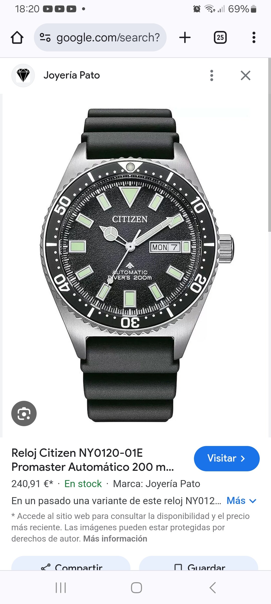 Además es el reloj más barato con el certificado ISO 6425, PVP con armis 298 € si te esfuerzas lo encuetras por 260€, con goma por 230 € los hay.