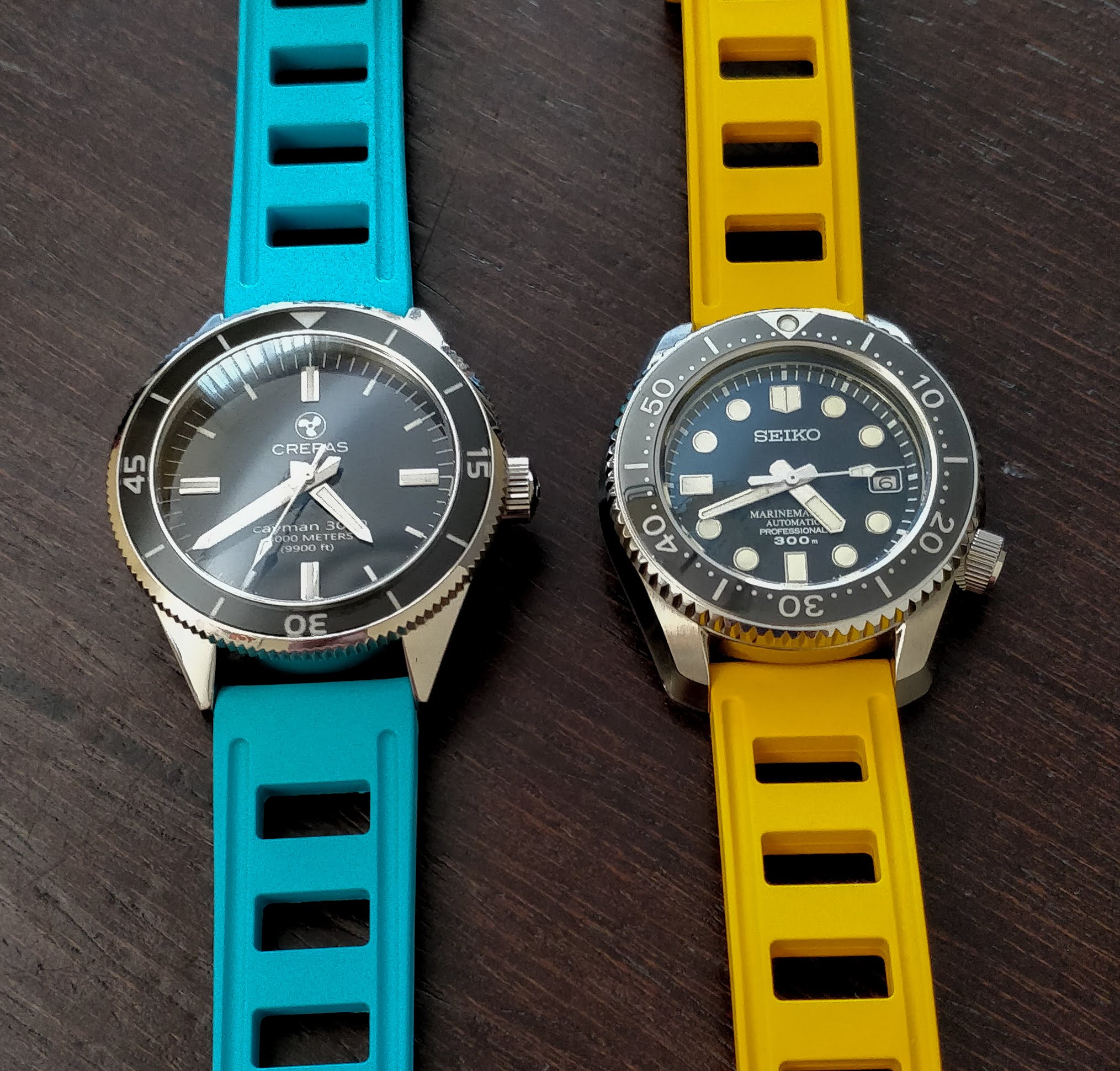 Emo las correas alternativas para el reloj dependerán del color del dial. Aún así creo que una correa Tropic negra es todo es un “must have” y la waffle de Seiko también.