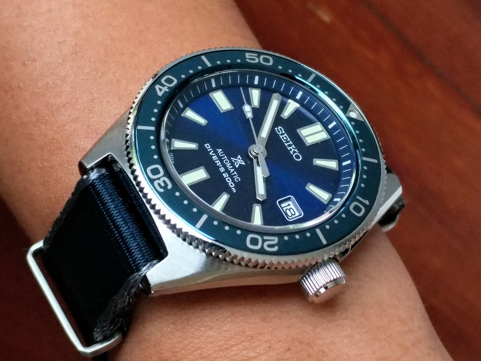 Ufff… en parte lo que me ha gustado del “nuevo” es ese aire “vintage” con la esfera color tabaco y las agujas doradas, pero del tuyo me gusta más el tamaño, el precio claro está, y también tiene una esfera degradada preciosa. Quizá, si tuviera que hacerme con un Seiko 62MAS (y la verdad es que estoy enamorado de esa caja), tiraría por la calle de enmedio. Un mod de un SPB anterior con agujas aftermarket.