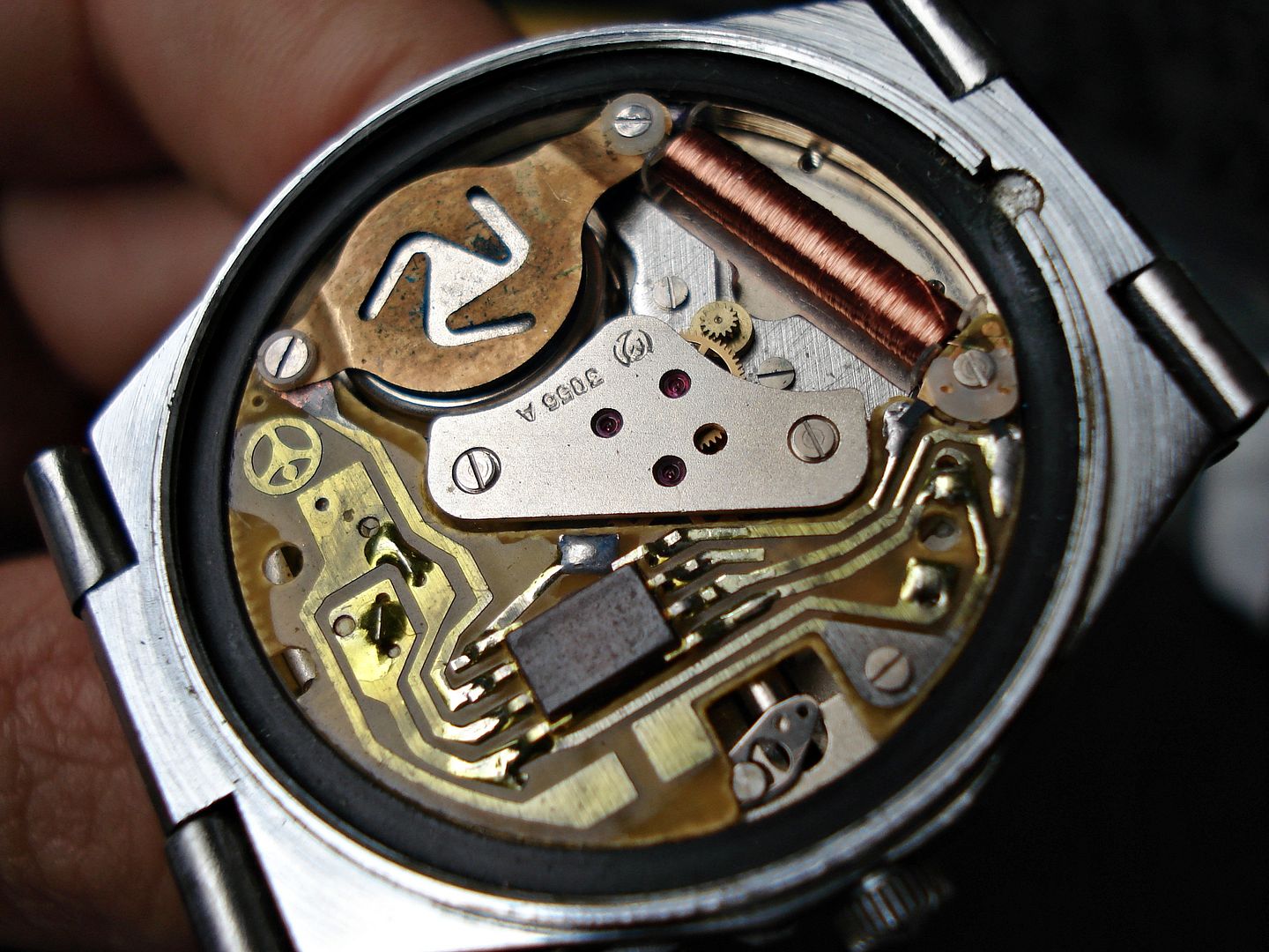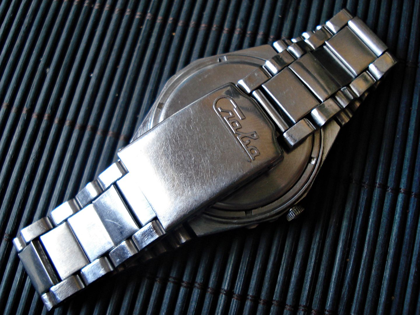 Es un Slava con movimiento de cuarzo 3056A, proviniente de la 2ª Fábrica de Relojes de Moscú y data de mediados de 1970 (toda esta información facilitada por el vendedor…que no verificada :baffle: ). Caja cromada y armis de acero. Su estado es bastante bueno, aunque tiene marcas propias de su edad…sobre todo en el armis.