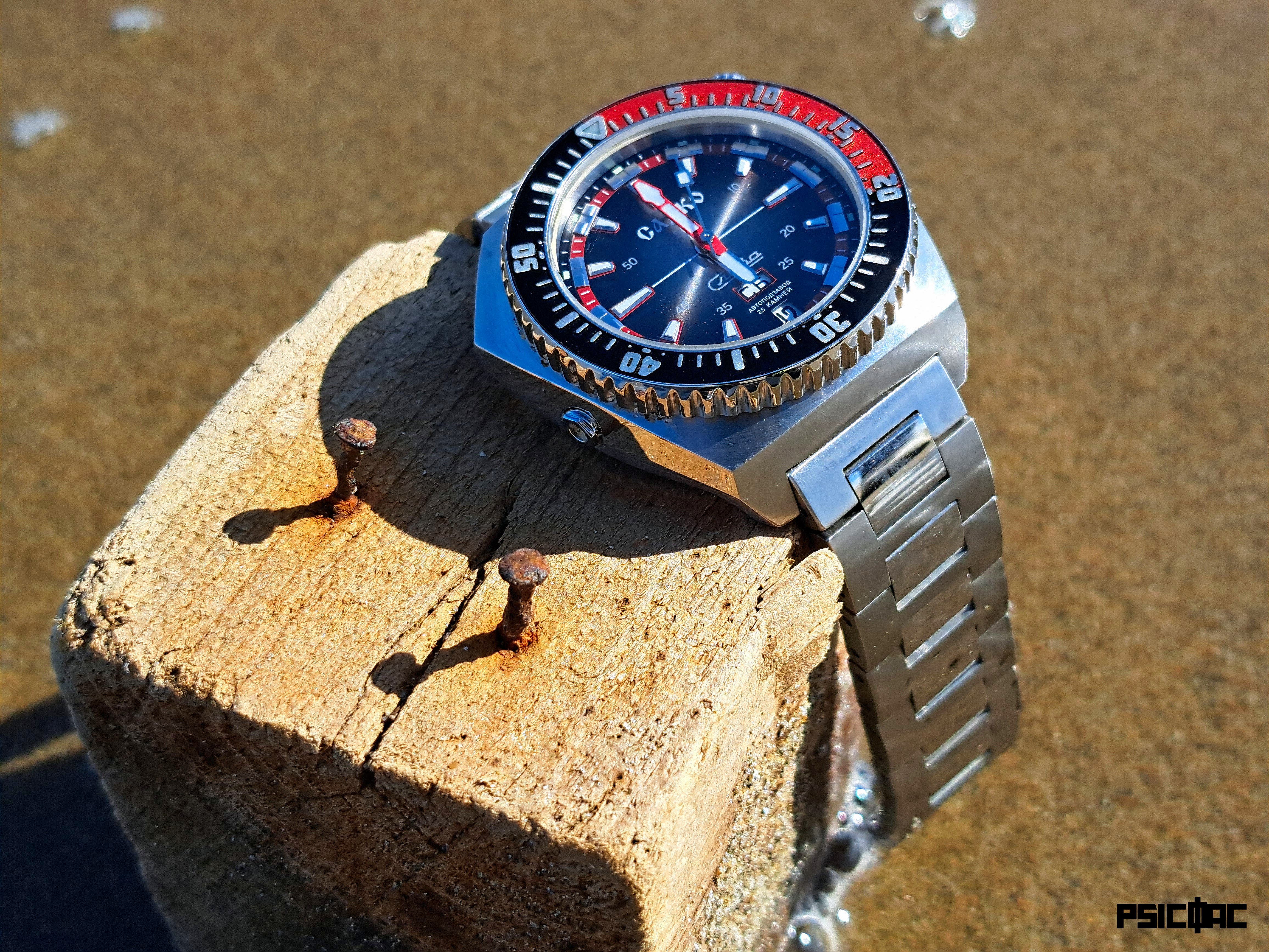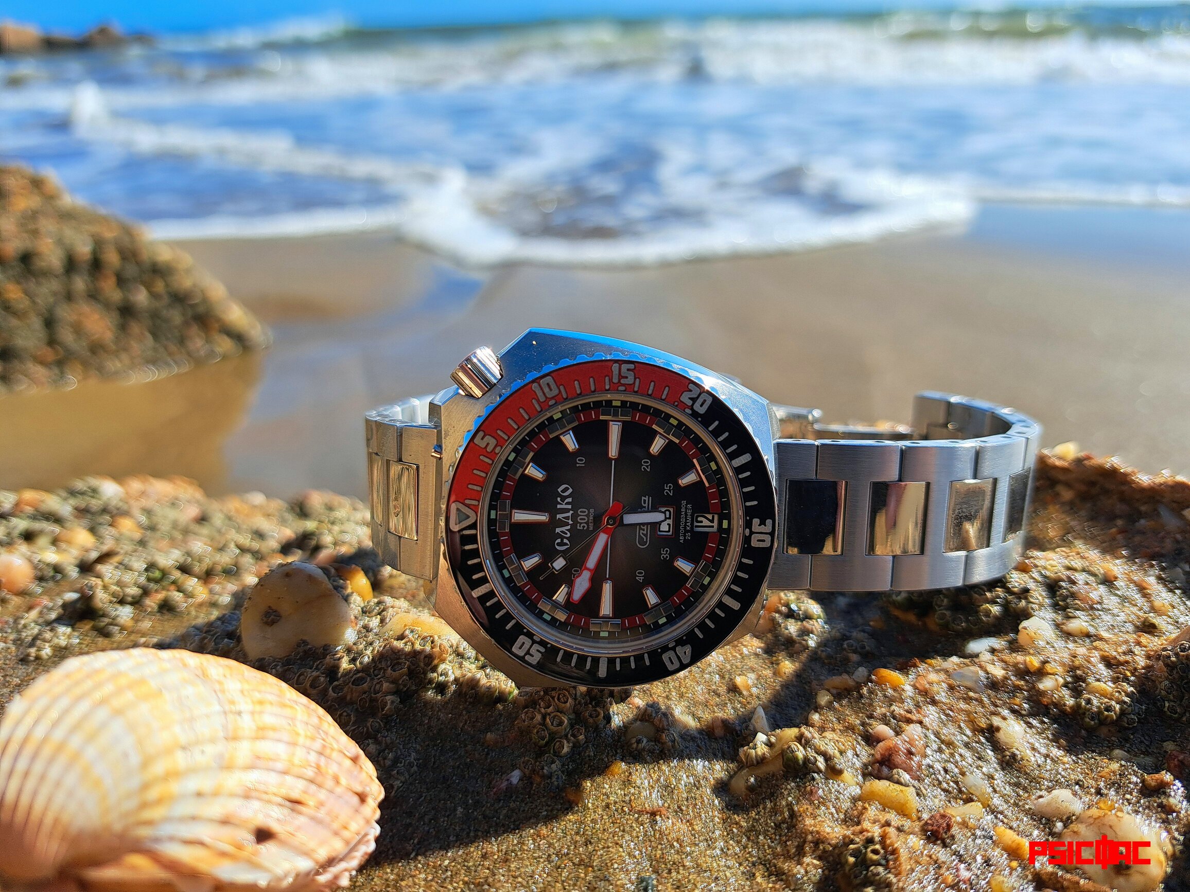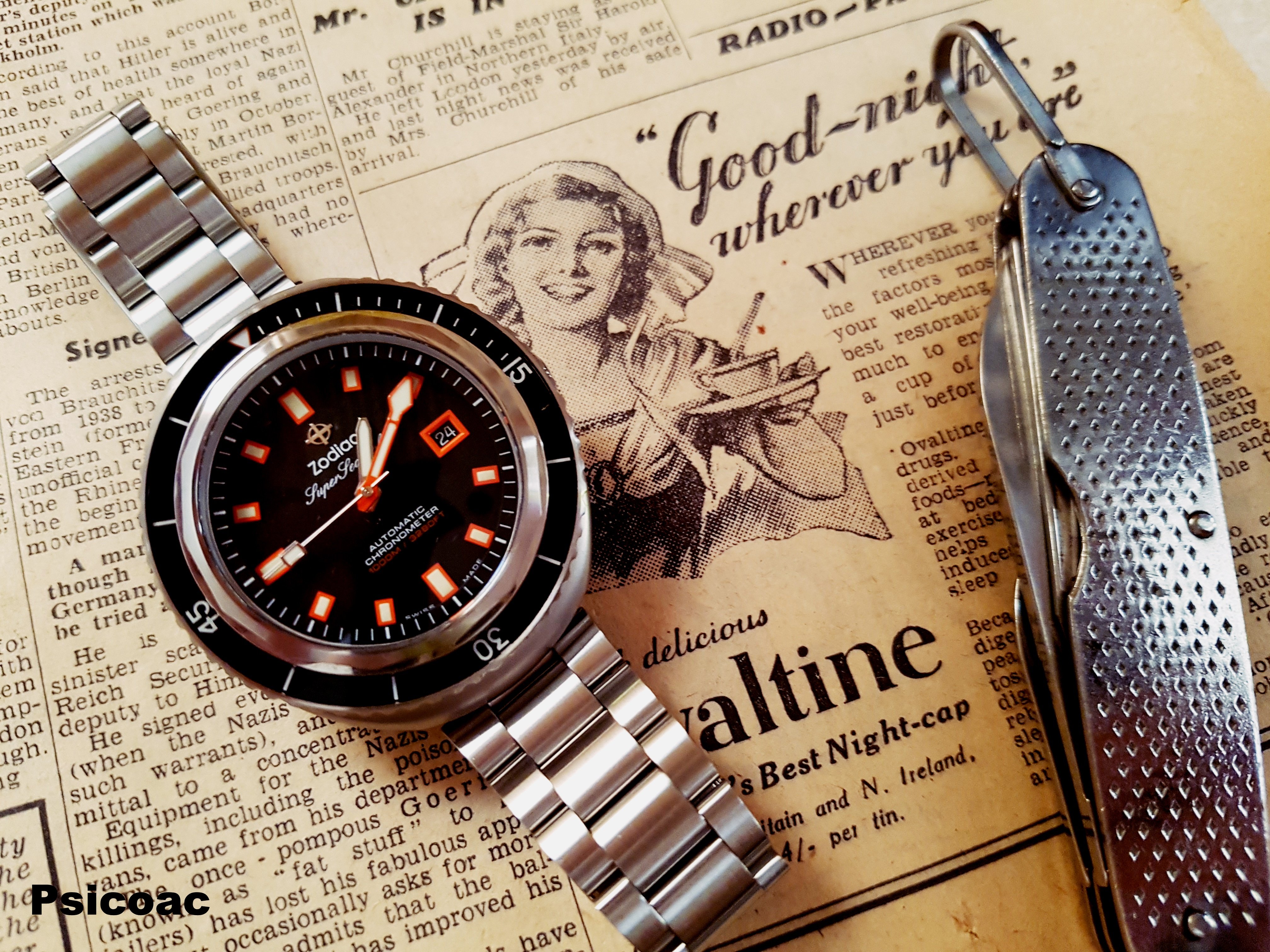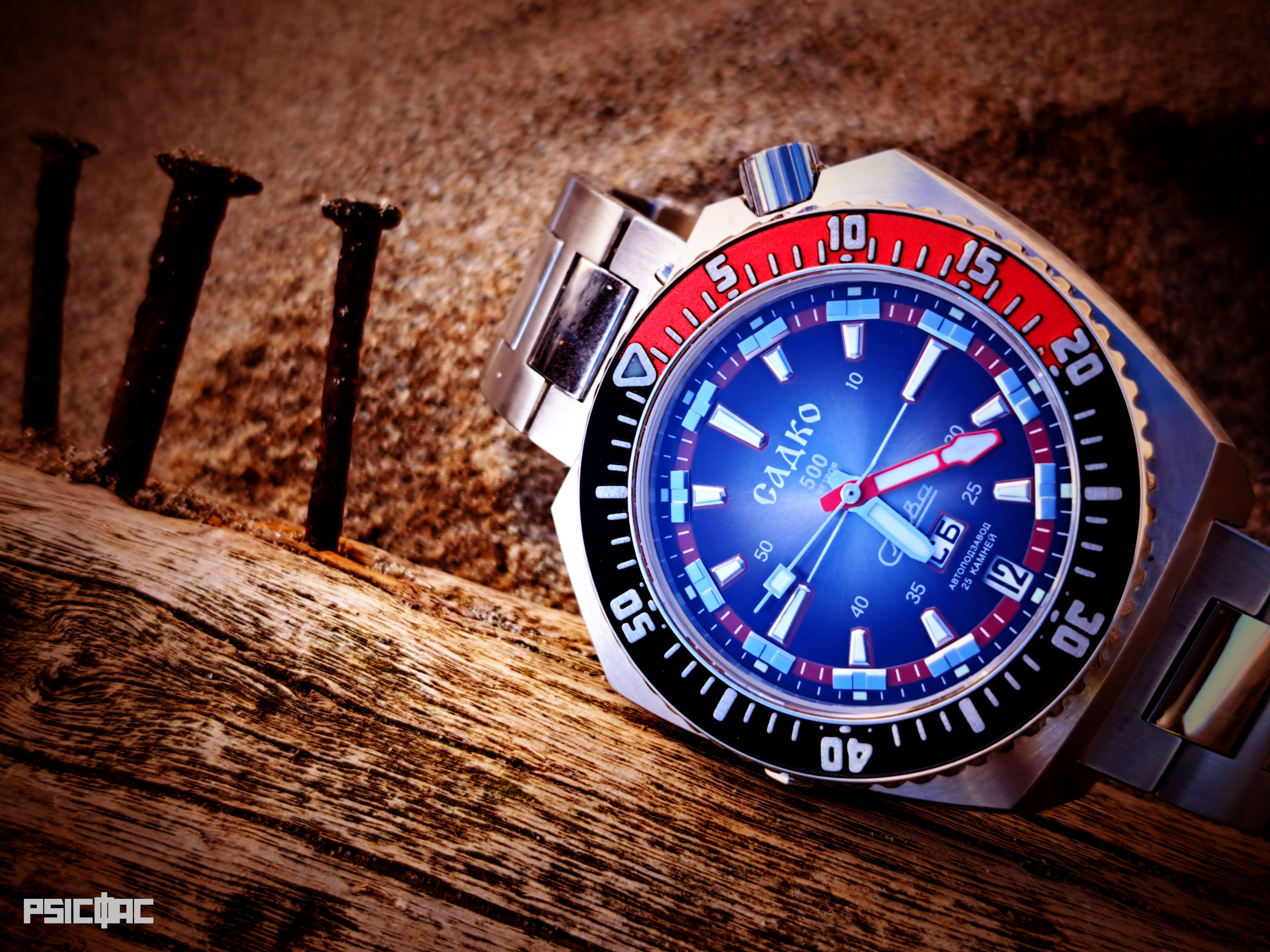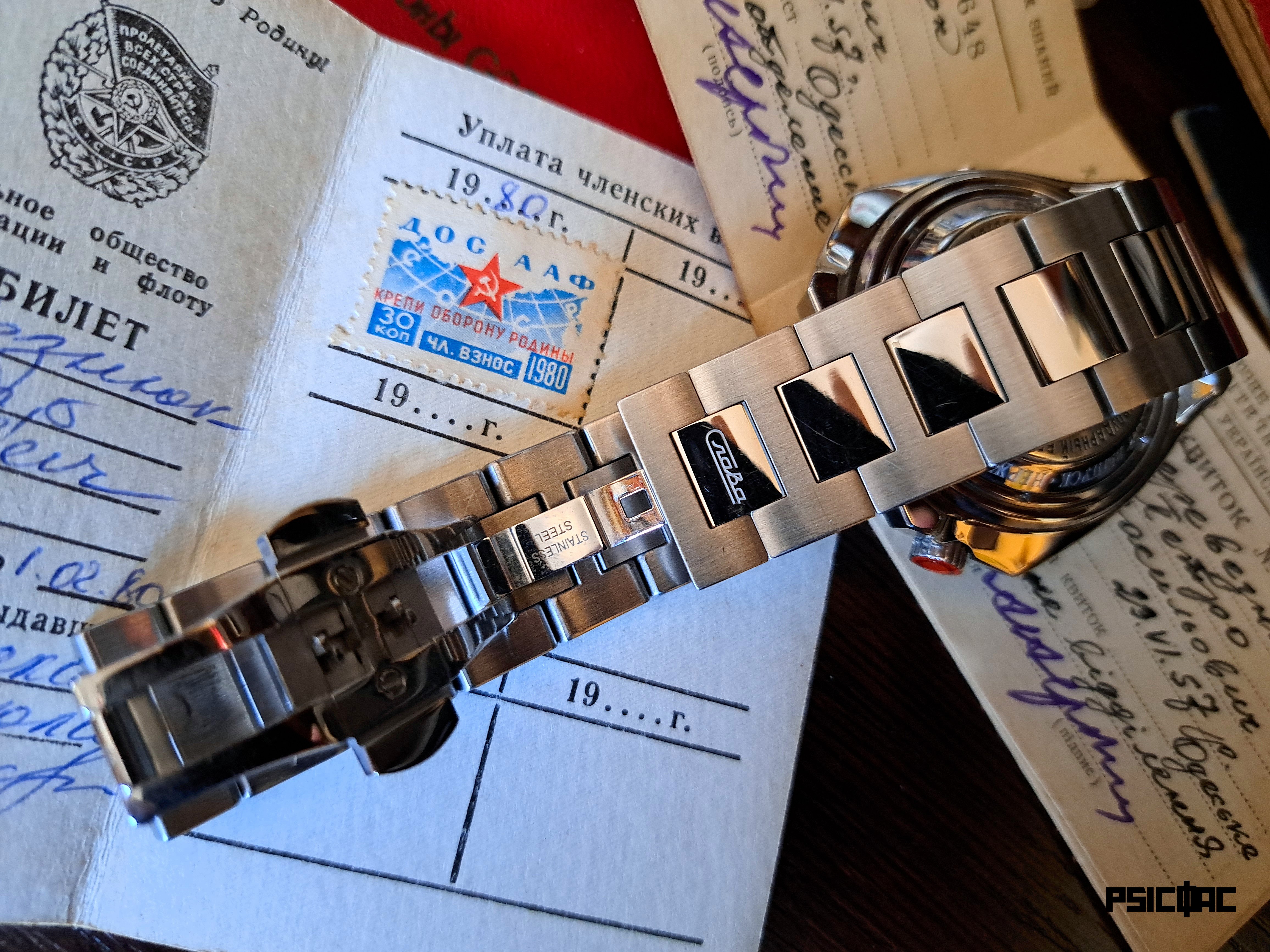Slava, se fijó en concreto, en dos modelos como referentes. Uno se encuentra de rigurosa moda en la época que es el Zodiac Olympos, y otro que había sido lanzado en 1968, el Super Sea Wolf, del cual hablamos como recuerdan aquí: