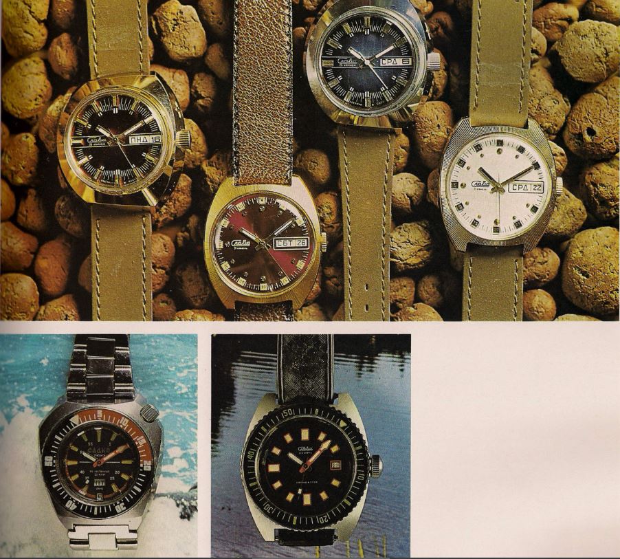 A mediados de la década los relojes con mayor resistencia al agua eran producidos por la Fábrica de Relojes de Chistopol (Vostok), la Primera Fábrica de Relojes de Moscú (Polyot), y la Fábrica de Relojes Petrodovrotsov (Raketa), mientras que la Segunda Fábrica de Relojes de Moscú (Slava), se encontraba algo relegada en tal aspecto.