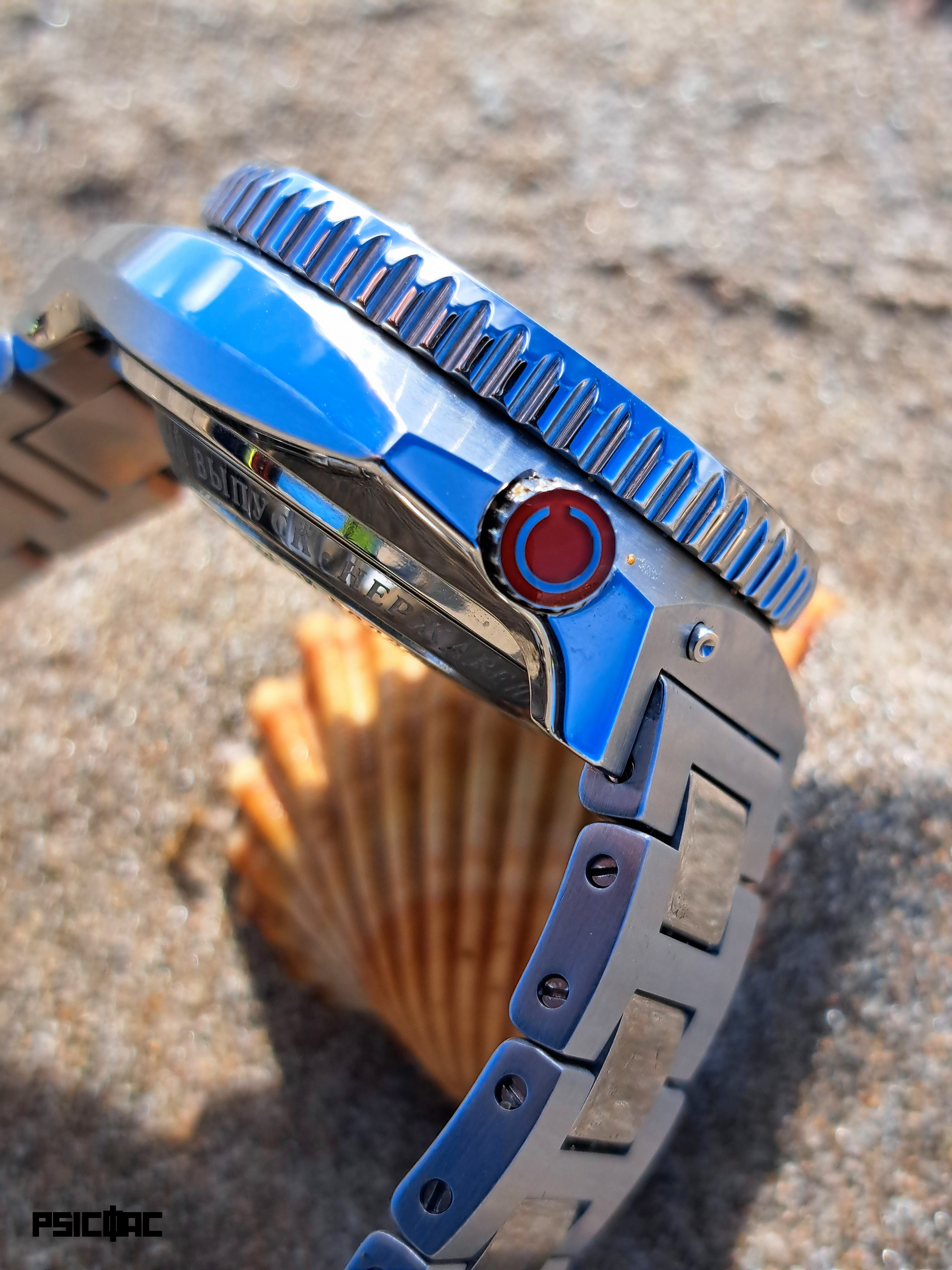 Dicho lo cual, y dado que el reloj no va a ser usado para buceo más allá del normal en playa, y puesto que la hermeticidad es adecuada, no me preocupa de momento, si bien hubiera preferido no encontrar dicho pulsador, me arranca una sonrisa cada vez que lo aprecio, dado “ahí está el tío, bien plantao” diciendo “aquí estoy yo” ja,ja.