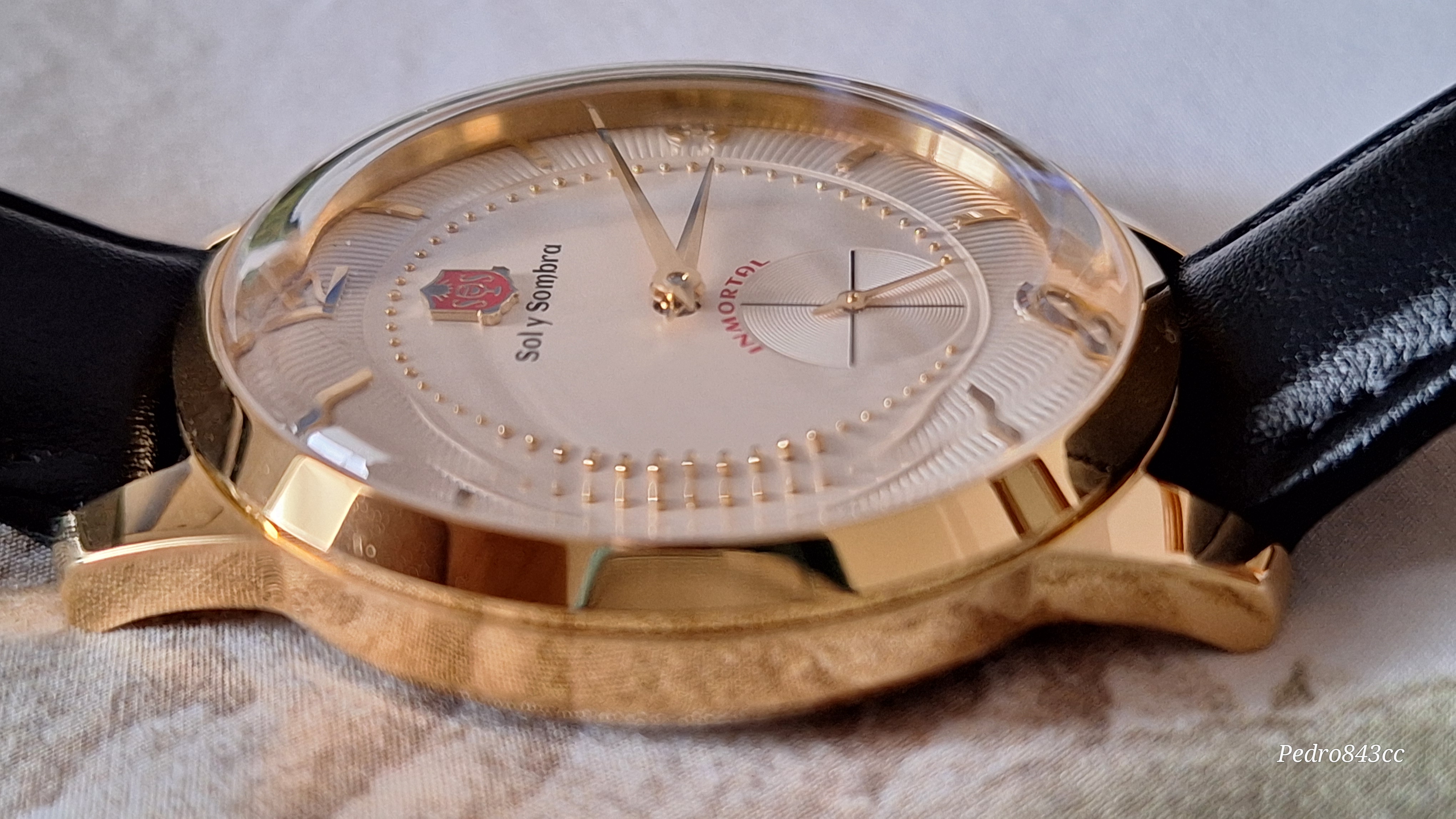 El Sol y Sombra Inmortal Original es un relojazo que ha salido redondo. Una joya, una esfera maravillosa, un conjunto sublime. Es ponérmelo y cerrar los ojos, y veo a mi abuelo (de quien heredé un Dogma Prima que alguno habréis visto), qué digo veo, conecto con aquella gran persona, alto, delgado, siempre elegante y de pulcros modales, dando cuerda a su reloj por la mañana antes de coger su bicicleta para ir al astillero donde trabajó la mayor parte de su vida. Y donde, casualidades de la vida, trabajo yo ahora.