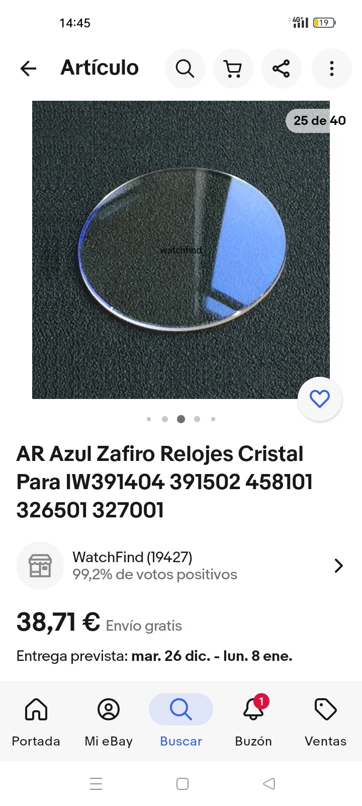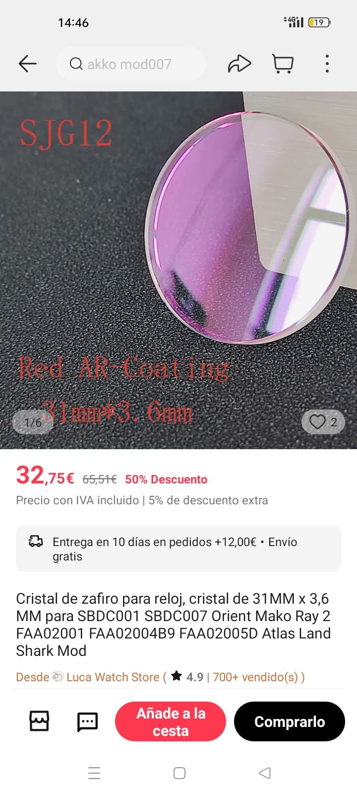 Lo que no sé cómo sacar la medida y grosor pero claro, la caja son 43mm pero el cristal ni idea y tampoco tengo ni idea de cómo sacarlo, además el que lleva tiene un ligero abombado, no es plano, eso tampoco sé si tiene un nombre determinado o no.