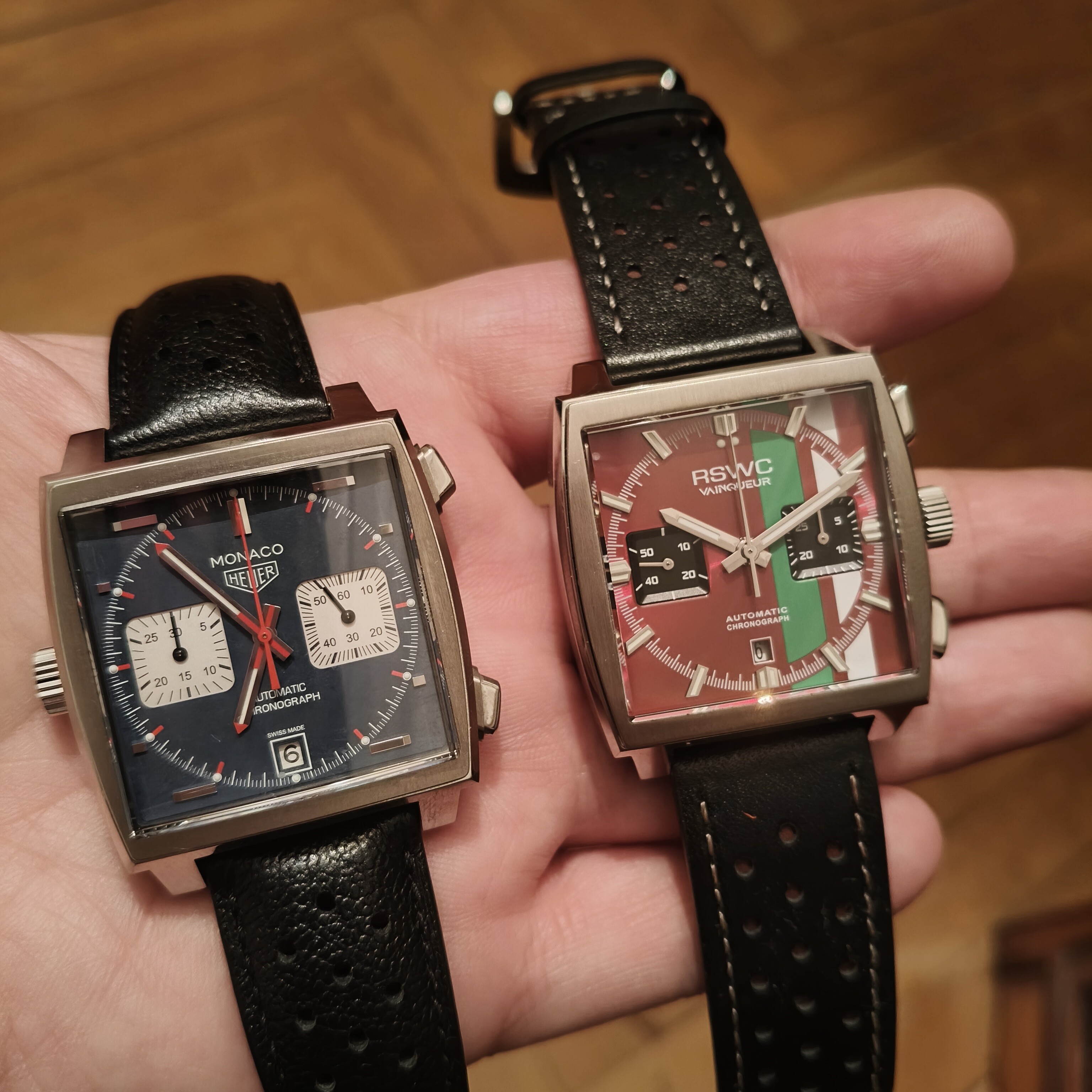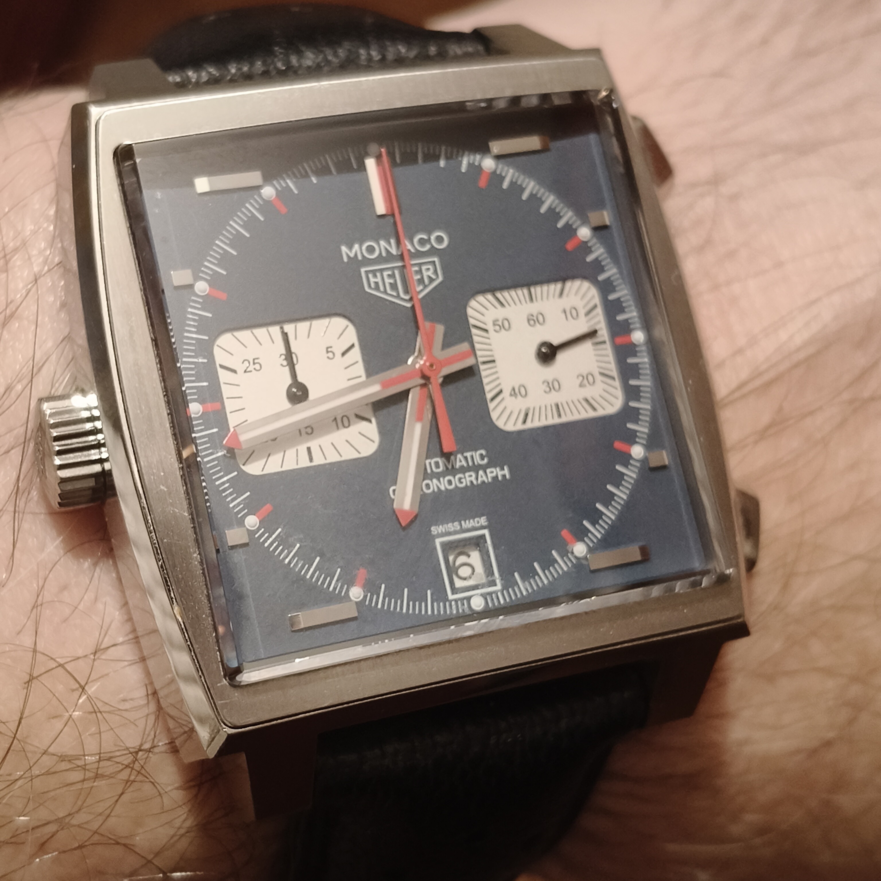 Pesa un pelín más que el Tag pero la caja no tiene mucho que envidiar, los pulsadores si que se nota la mayor diferencia quizá, los diales parejos emho, y la fecha es verdad que está mejor en el Mónaco pero vamos que en proporción es un chollo señores.