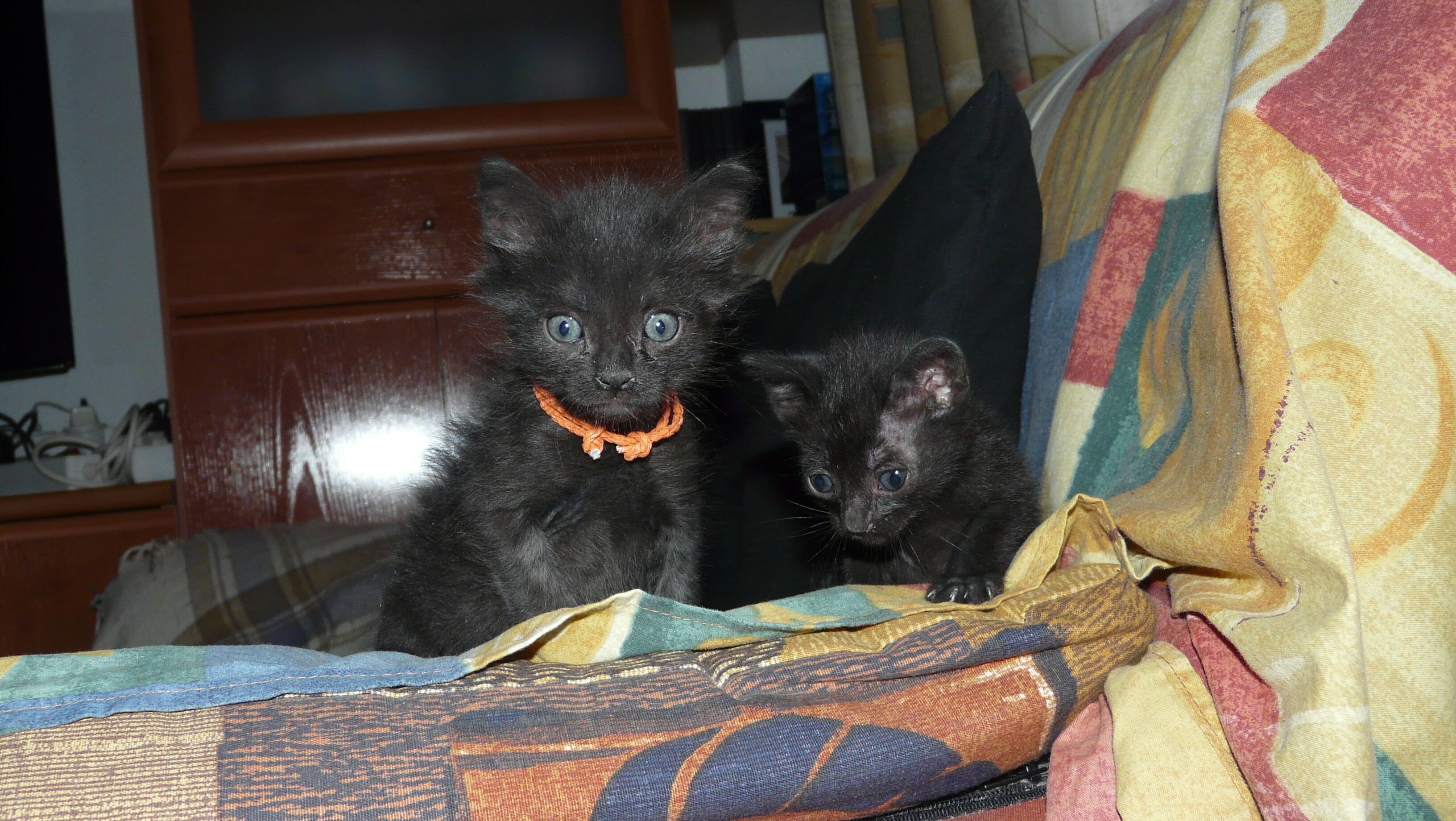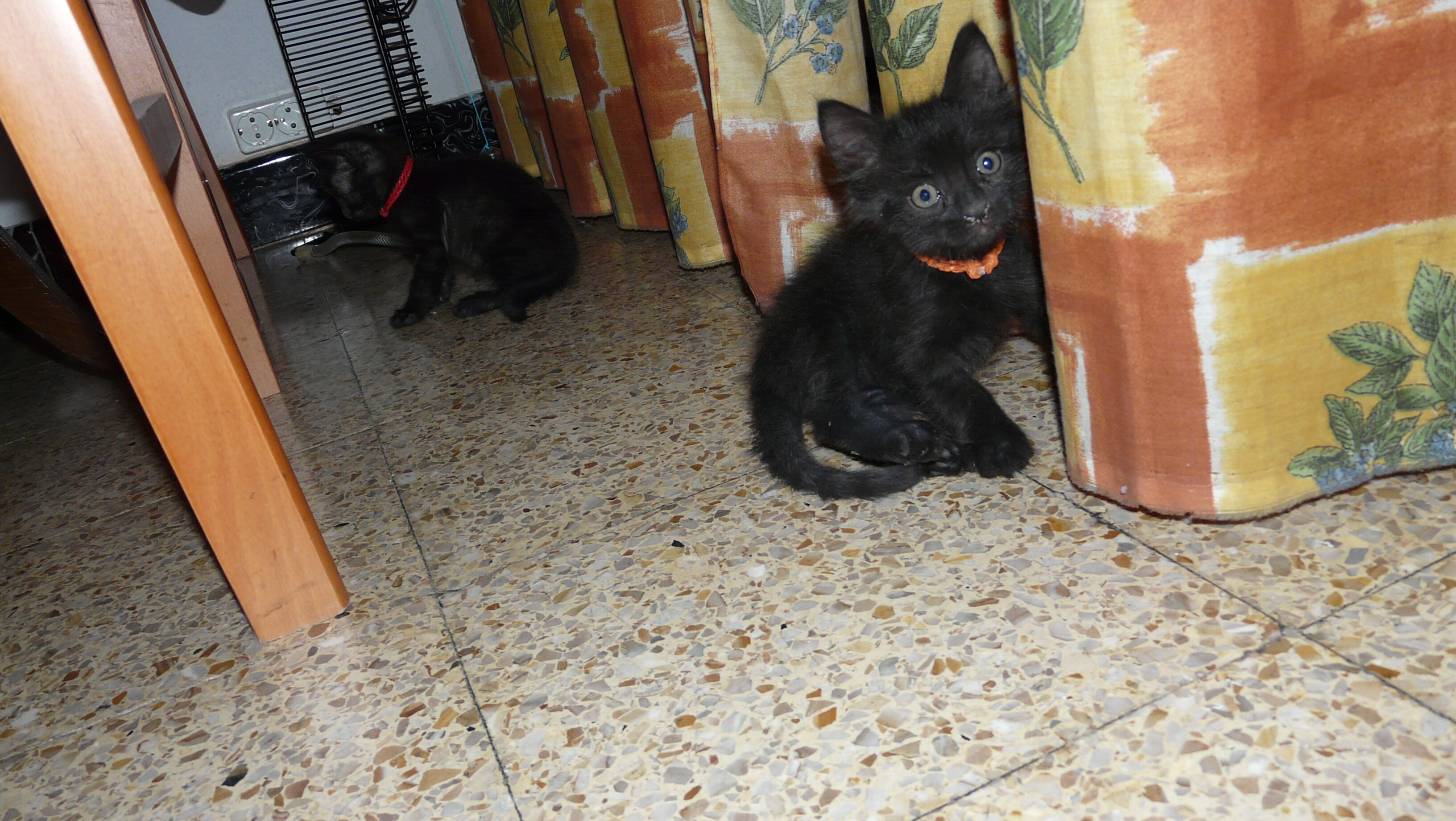 Mu bonitos que están:beauty:, se nota la diferencia de tamaño y desarrollo en Mandarina. No quiero ser pesado con los consejitos, pero es que tengo gato y una vez se nos ocurrió a mi mujer y a mí ponerle un collar, poco ajustado, como el que lleva Mandarina. Una tarde, al volver a casa, encontramos que al intentar quitárselo con la boca se le había enganchado en los colmillos de abajo, imagínate el cuadro, el pobre se había hecho sangre en las patas tirando de él. Hay quien le encantan los gatos con collar, yo no se lo pongo por miedo a que se enganche en algún sitio, cosa a la que son propensos los gatos por su afición a meterse en todas partes.