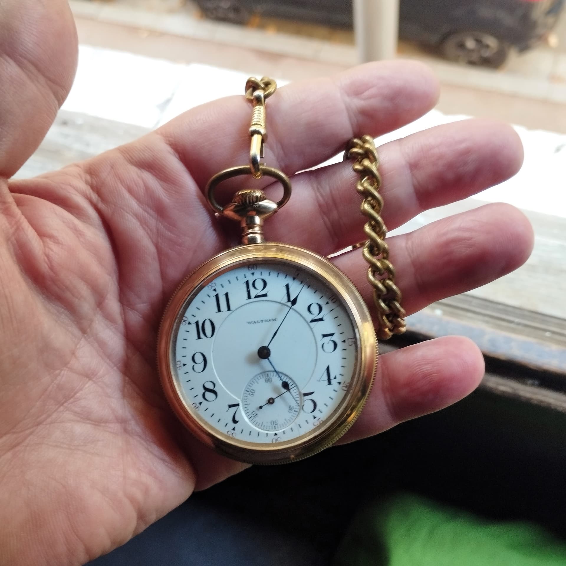 Tiene un tamaño relativamente grande para los cánones de la época, 36 mm, y su chapado en oro tiene sus desgastes, pero aún mantiene buena presencia.