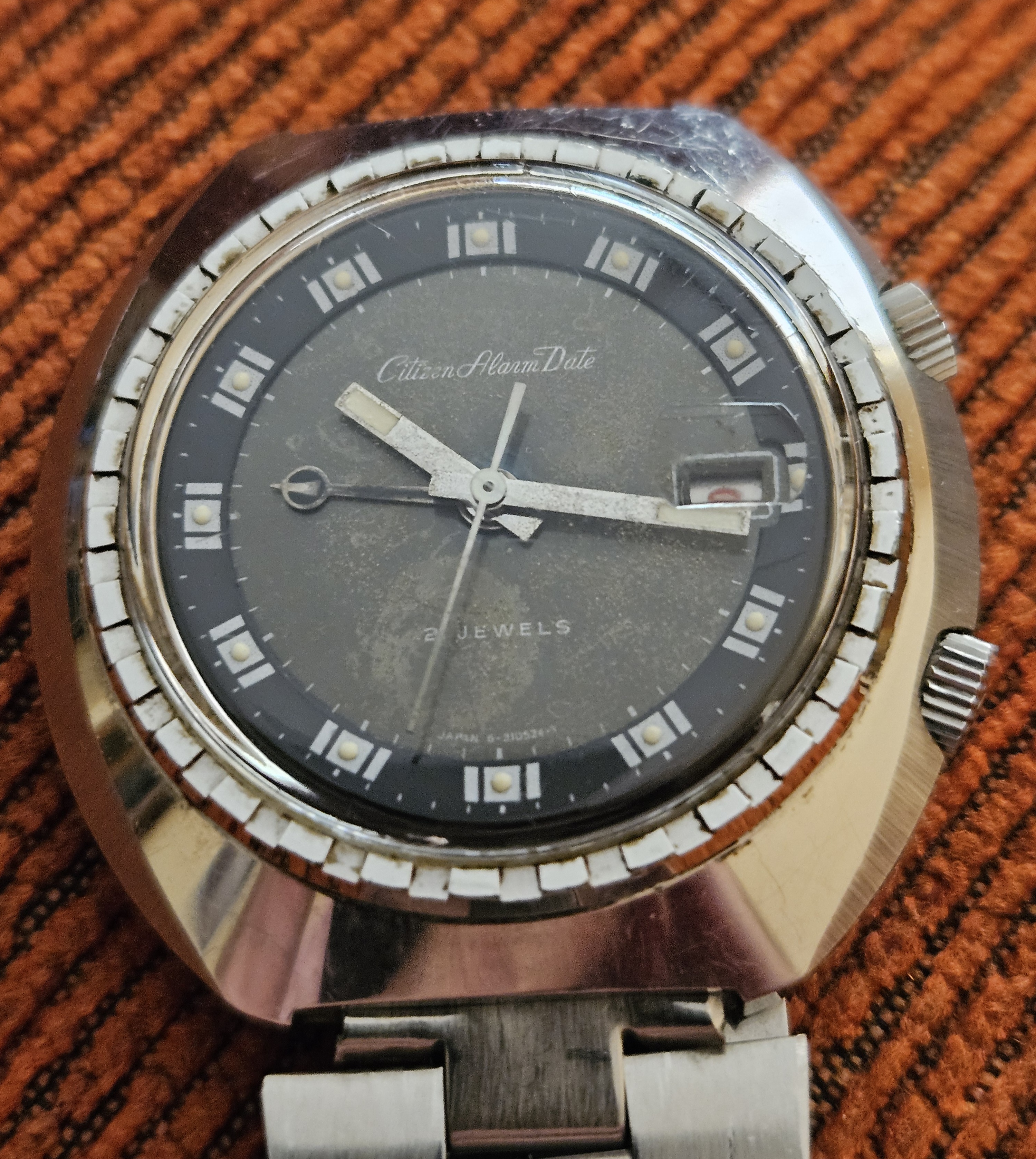 Citizen Alarm Date de mi padre… un poco de cuerda y a funcionar… el dial está para darle una limpieza.