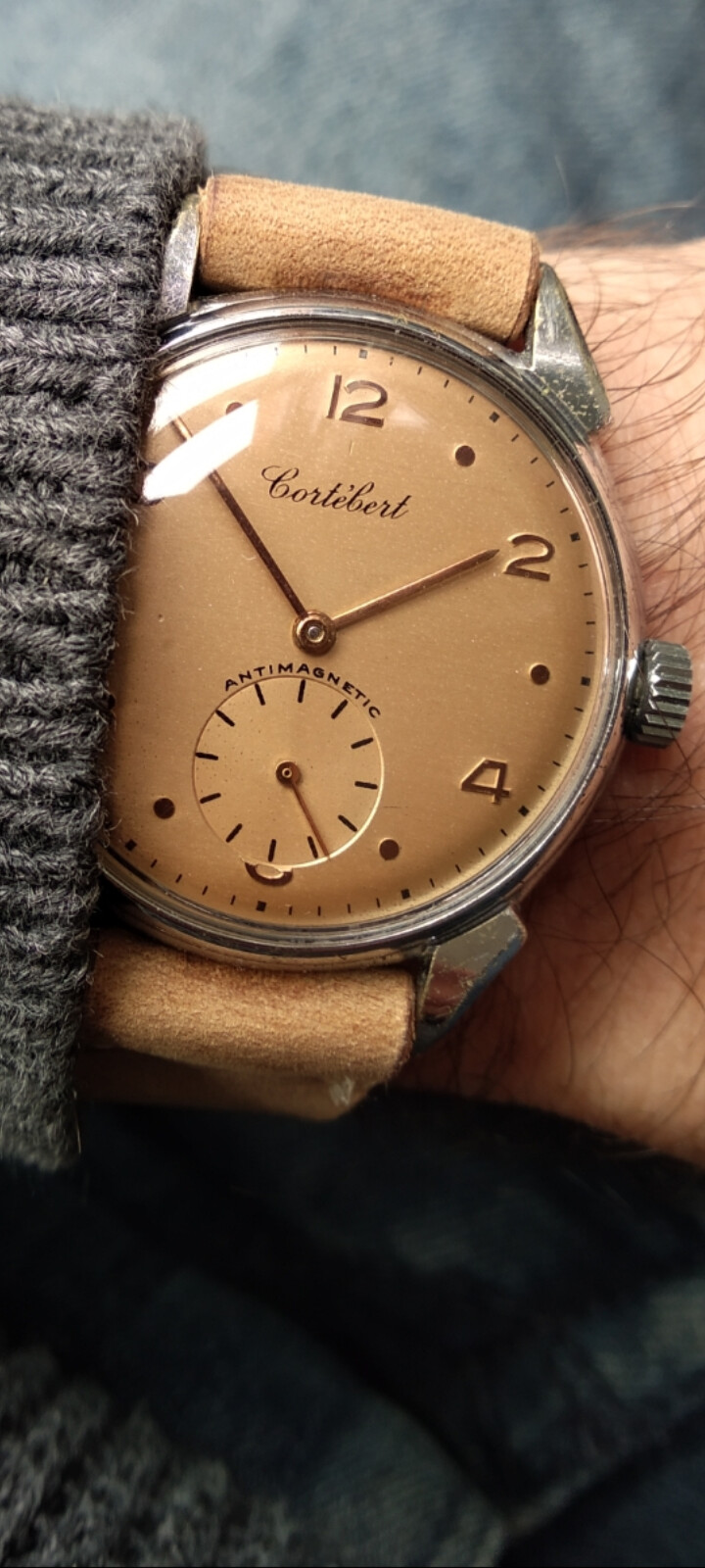 Hoy tenemos en mano ya, este Dogma Prima, recién salido del taller. Ahora está a pleno funcionamiento y con las saetas y numerales limpios, que junto al pulido del plexi lo hace más hermoso. Dial sin tocar, con su patina original.