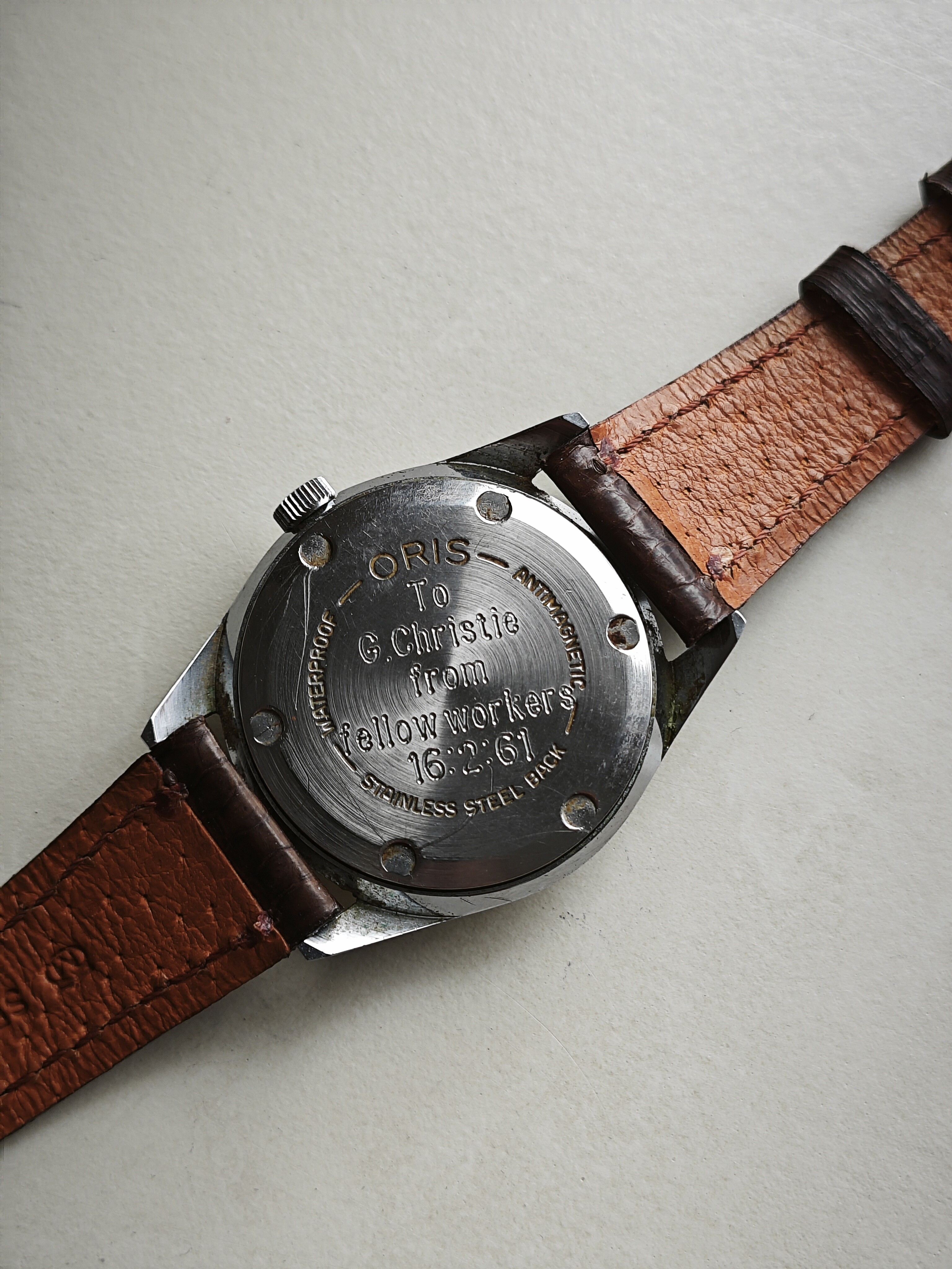 Hoy paseamos a este abuelete, lo compré hace lo menos 10 años en la bahía por la astronomica cantidad de 25 euros sino recuerdo mal, imagino que por tener un buen grabado detrás de su antiguo dueño, ya que por lo que se ve es un regalo de despedida, jubilación imagino, del señor G.Christie de sus compañeros de trabajo. Irónicamente a mí estas cosas le dan más valor a los vintage ya que le da un poco de contexto, pasa de ser una vieja máquina desfasada sin alma a un momento importante de la vida de alguien, casi puedes sentir la expectación de los compañeros recaudando el dinero y yendo a comprar el regalo para su apreciado compañero y la emoción del señor Christie al recibirlo en su ultimo día de trabajo antes de disfrutar de su jubilación el 16 de febrero de 1961. Y sigue funcionando más que aceptablemente ![]()