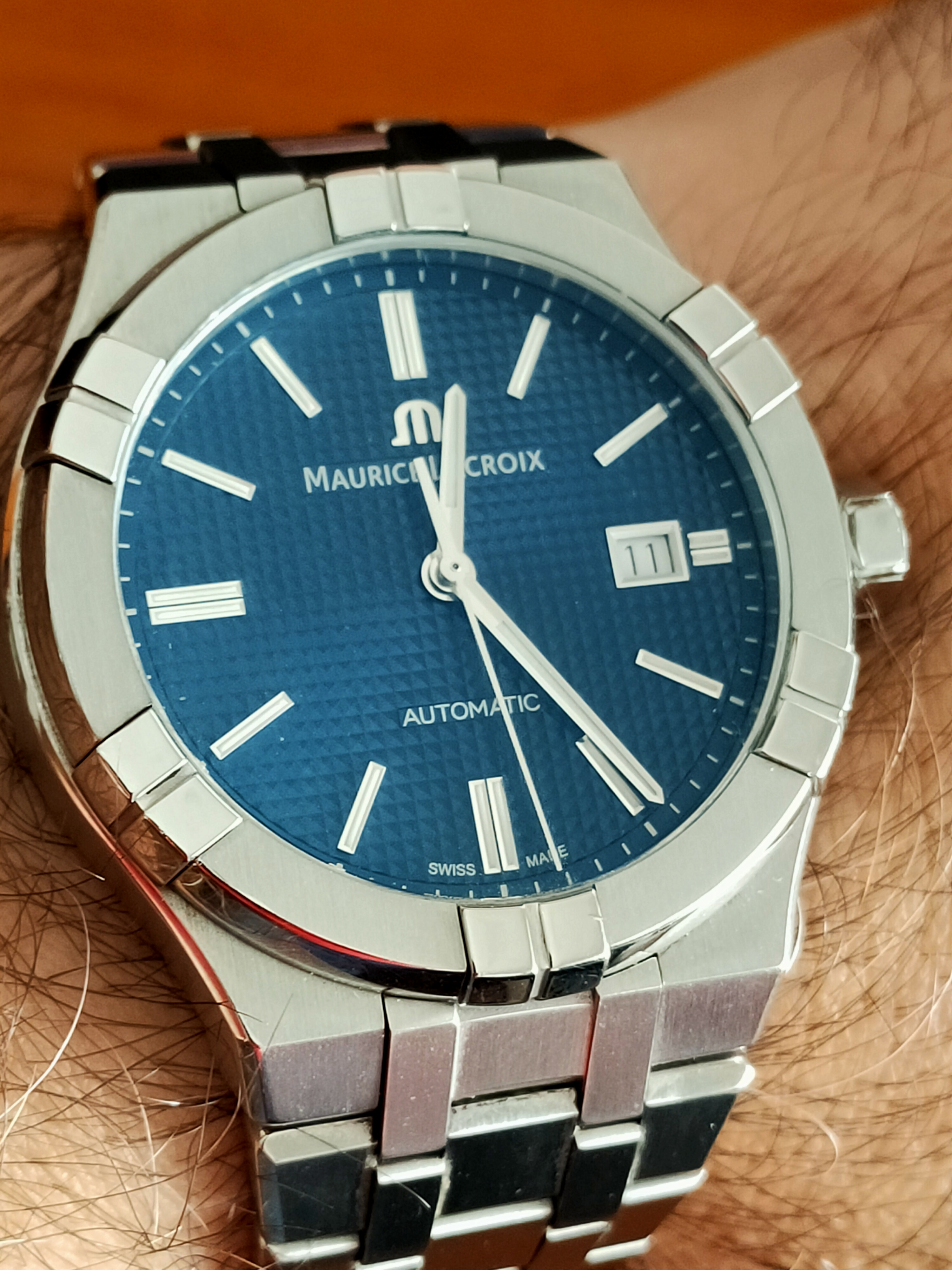 Un poco grande, ha de ser un reloj que se deslice sin sentir bajo la camisa. Los índices tampoco son demasiado discretos y el fechador resalta demasiado, si fuese en fondo negro con letras blancas sería perfecto. Pero por ahí van los tiros.