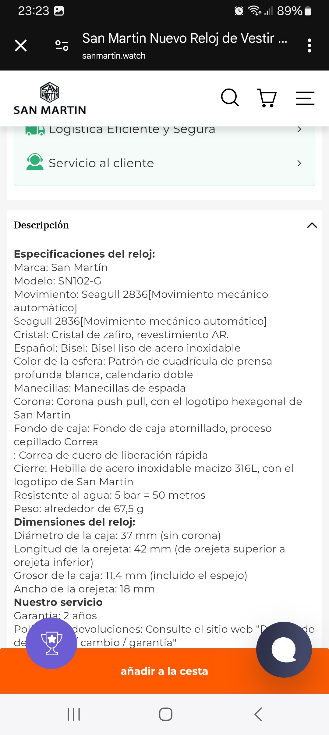 Se desliza con facilidad bajo las mangas. No tiene una estética llamativa, es discreto. Es sumergible a 100 m. Se puede usar en evento formal y de diario. Sí.