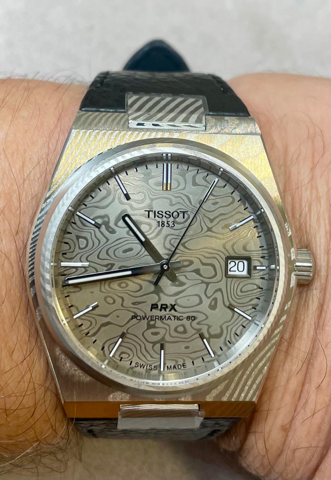 Creo que la caja de acero damasco ya es suficientemente diferente como para haber optado por un dial de los que ya tiene el PRX en catálogo, u optar por uno nuevo, por ejemplo degradado negro-gris, por aquello de incrementar la exclusividad del modelo.