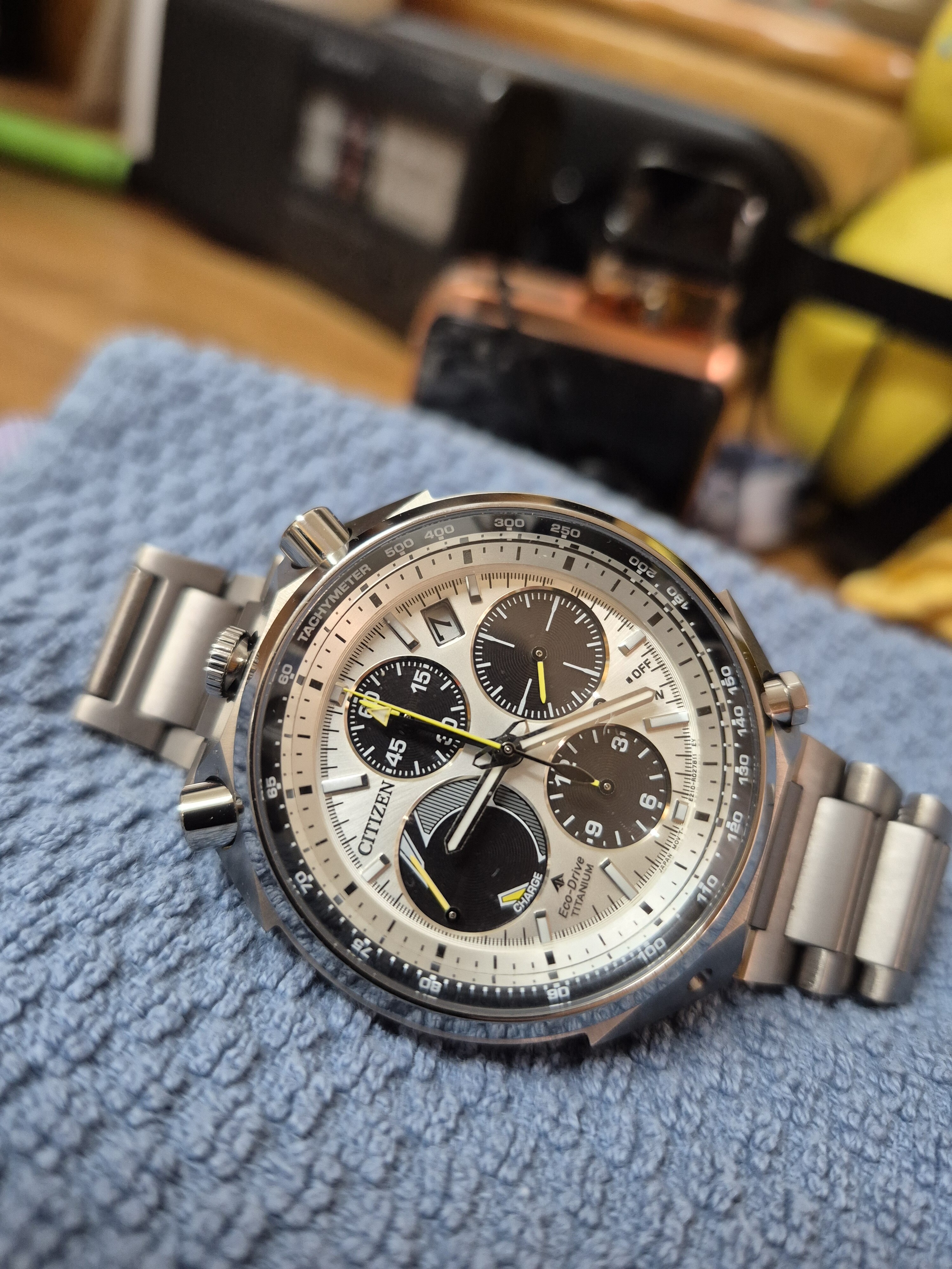 El Citizen este de la foto me lo hubiera quedado si no fuera de 43,5mm. me lo veo grande, a ver si lo fabrican más contenido.