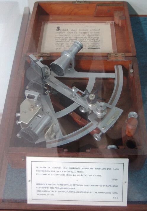 Un momento clave en el desarrollo de esta disciplina se produjo en 1922, con la primera travesía aérea del Atlántico Sur. Entre el 30 de marzo y el 17 de junio, los aviadores portugueses Carlos Viegas Gago Coutinho y Artur de Sacadura Freire Cabral completaron un vuelo histórico a pesar de múltiples contratiempos mecánicos. Coutinho, oficial de la Armada portuguesa con amplia experiencia en navegación por todo el mundo, utilizó un sextante de su propia invención equipado con un horizonte artificial generado con la ayuda de una burbuja de agua, al que denominó sextante de precisión. Posteriormente, se le incorporó iluminación para permitir su uso nocturno. Además, junto con Cabral, desarrolló el corrector de trayectoria, un dispositivo que permitía determinar el ángulo entre el eje longitudinal del avión y su rumbo efectivo, en función del viento. Ambos instrumentos fueron probados con éxito en un vuelo de Lisboa a Madeira en 1921, antes de emprender la travesía del Atlántico Sur al año siguiente. Aunque las técnicas desarrolladas deberían haber supuesto un gran avance en la navegación aérea, su adopción fue sorprendentemente lenta.
