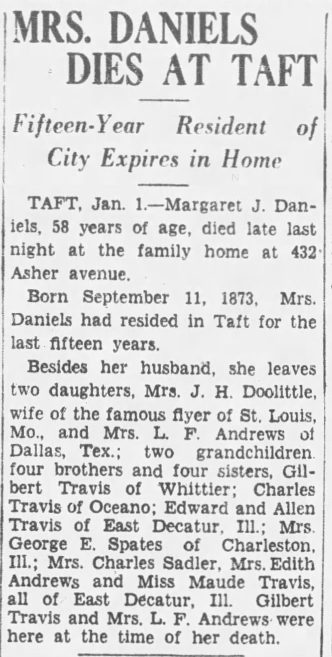 Abro aquí un pequeño paréntesis para contextualizar este detalle. Como se mencionó anteriormente, en 1930 Jimmy Doolittle dejó el Ejército para comenzar a trabajar en Shell, ya que tanto su madre como su suegra estaban enfermas y el sueldo militar no bastaba para sostener a la familia. Su madre falleció ese mismo año, y su suegra, según una esquela publicada en el Los Angeles Times, 2 de enero, 1932, habría fallecido el 31 de diciembre de 1931.